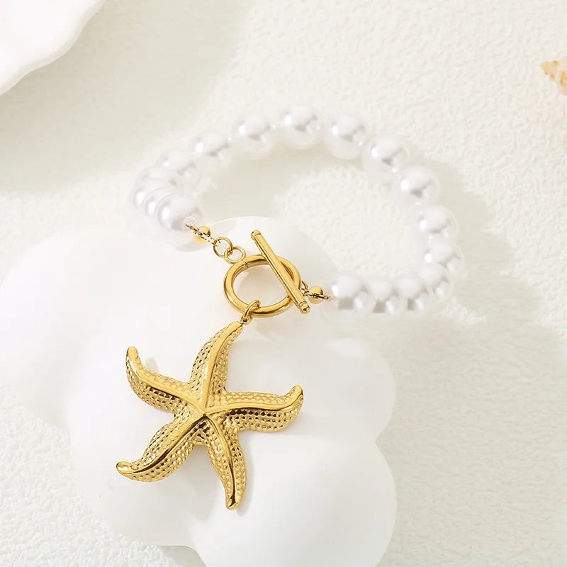 - Adorned with exquisite gold-plated seashell, starfish, and heart charms.
