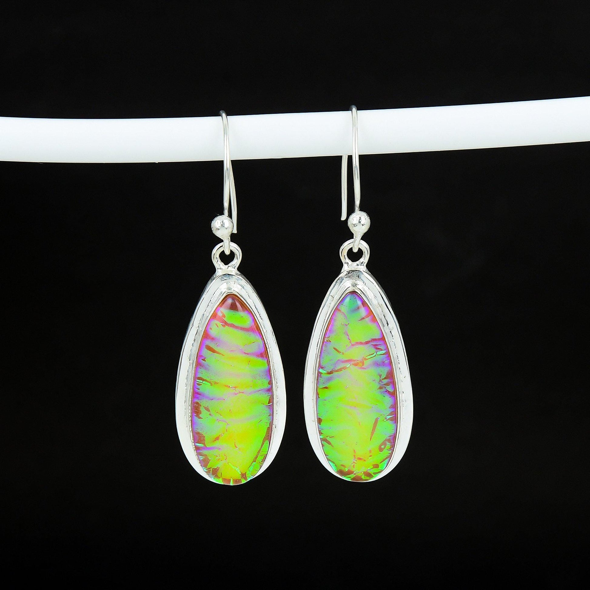 Featuring a stunning array of iridescent hues, these earrings capture the light and reflect a spectrum of colors, making them a truly unique addition to your jewelry collection.