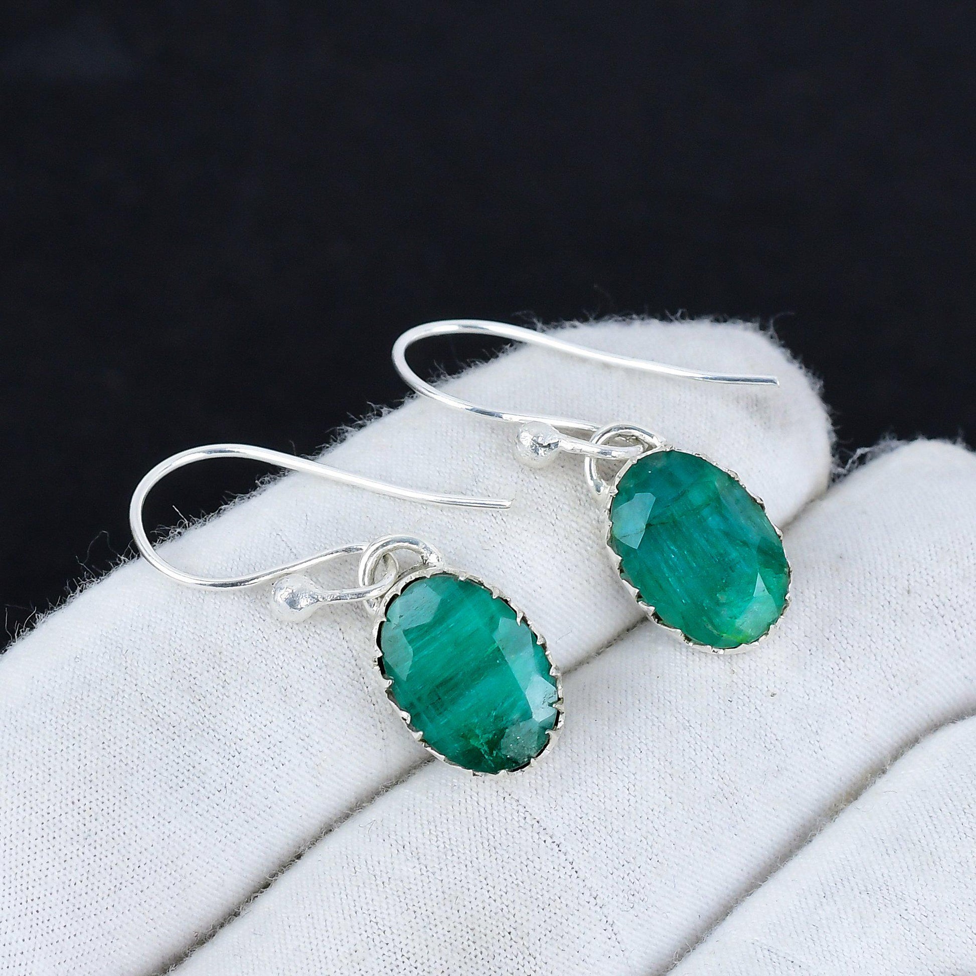 Design: Crafted with precision, each earring features a radiant oval-cut emerald set in a sleek, silver setting.