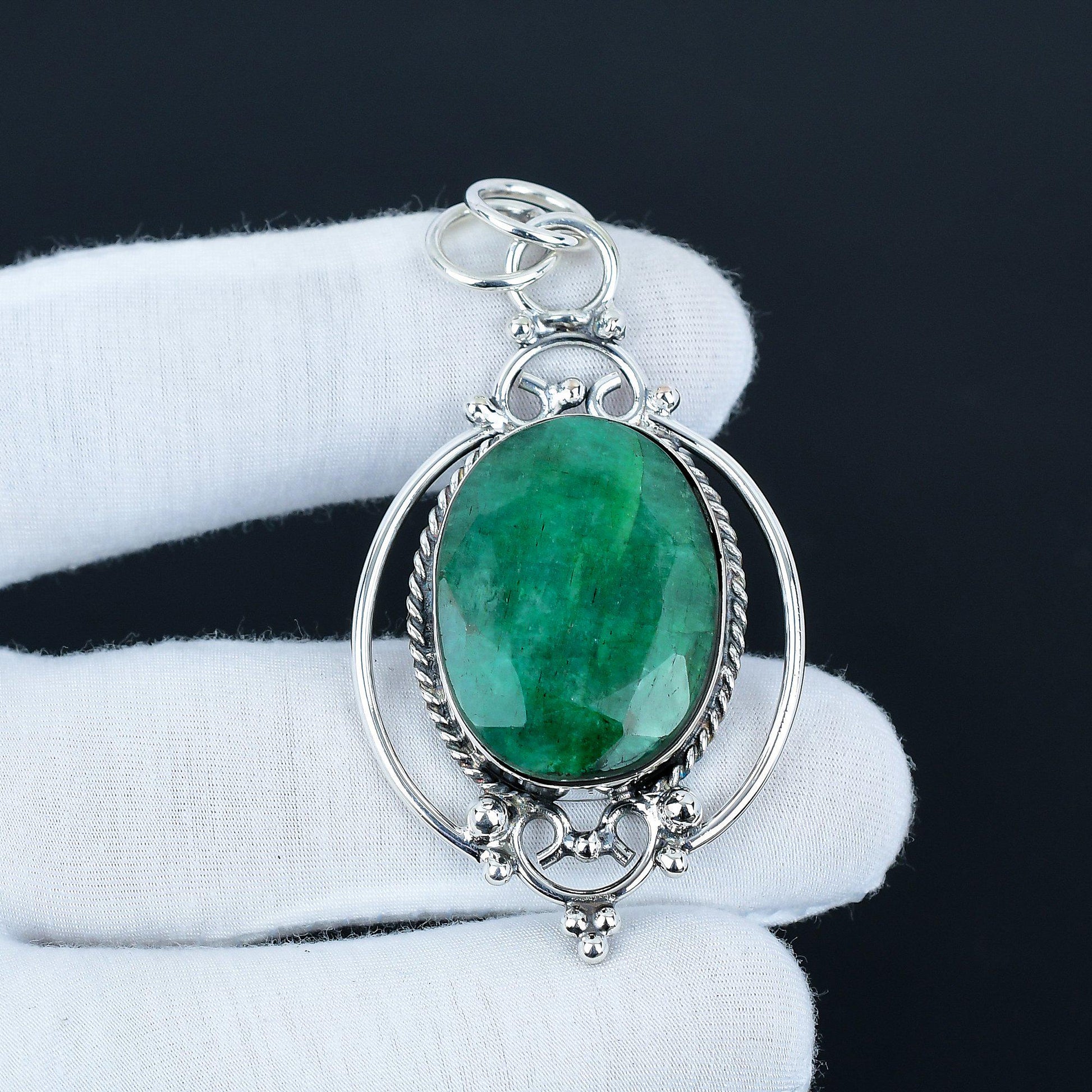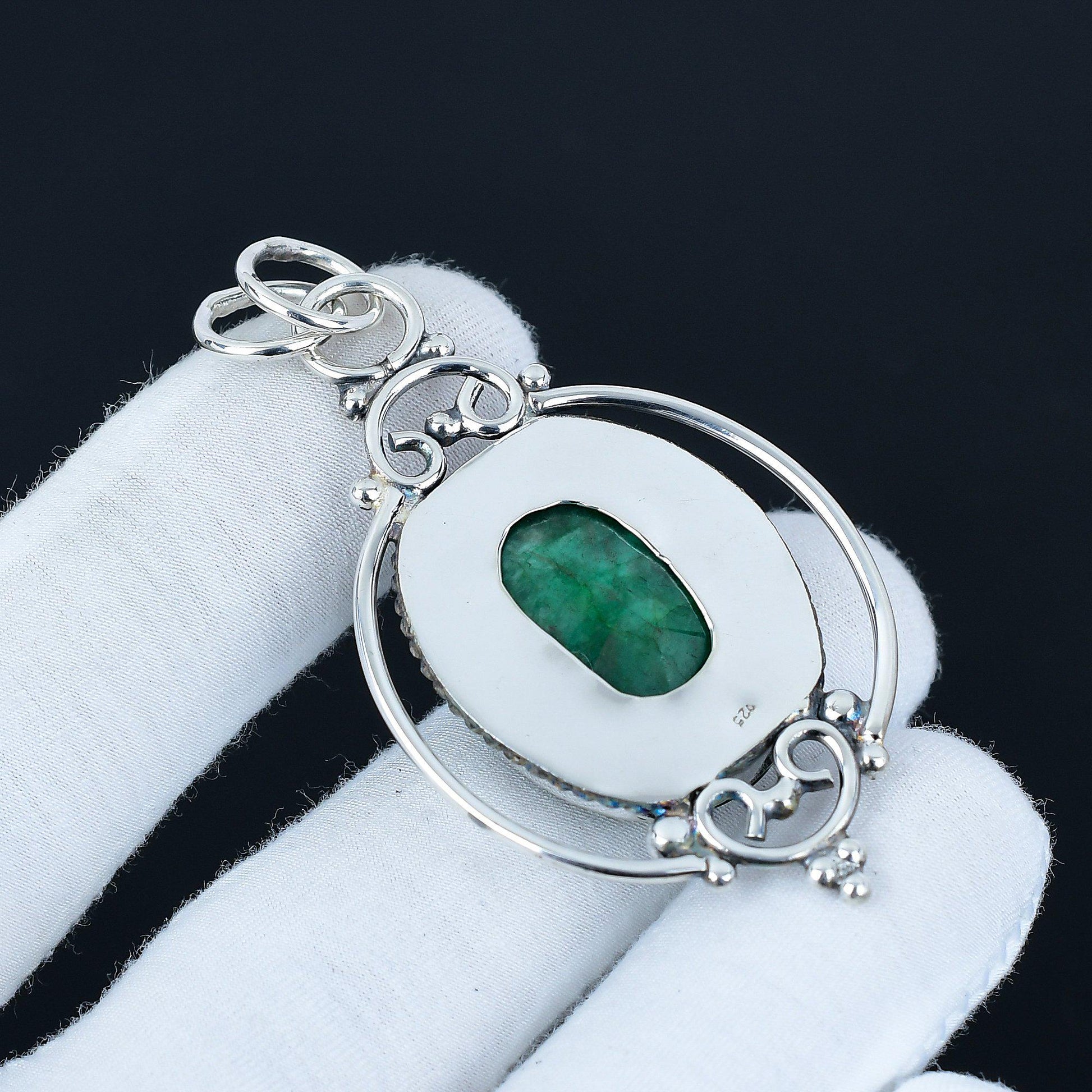 Material: The pendant is crafted from high-quality sterling silver, ensuring durability and a radiant shine that lasts. The central gemstone is a beautiful emerald-green hue, reminiscent of tranquil forests and deep waters.