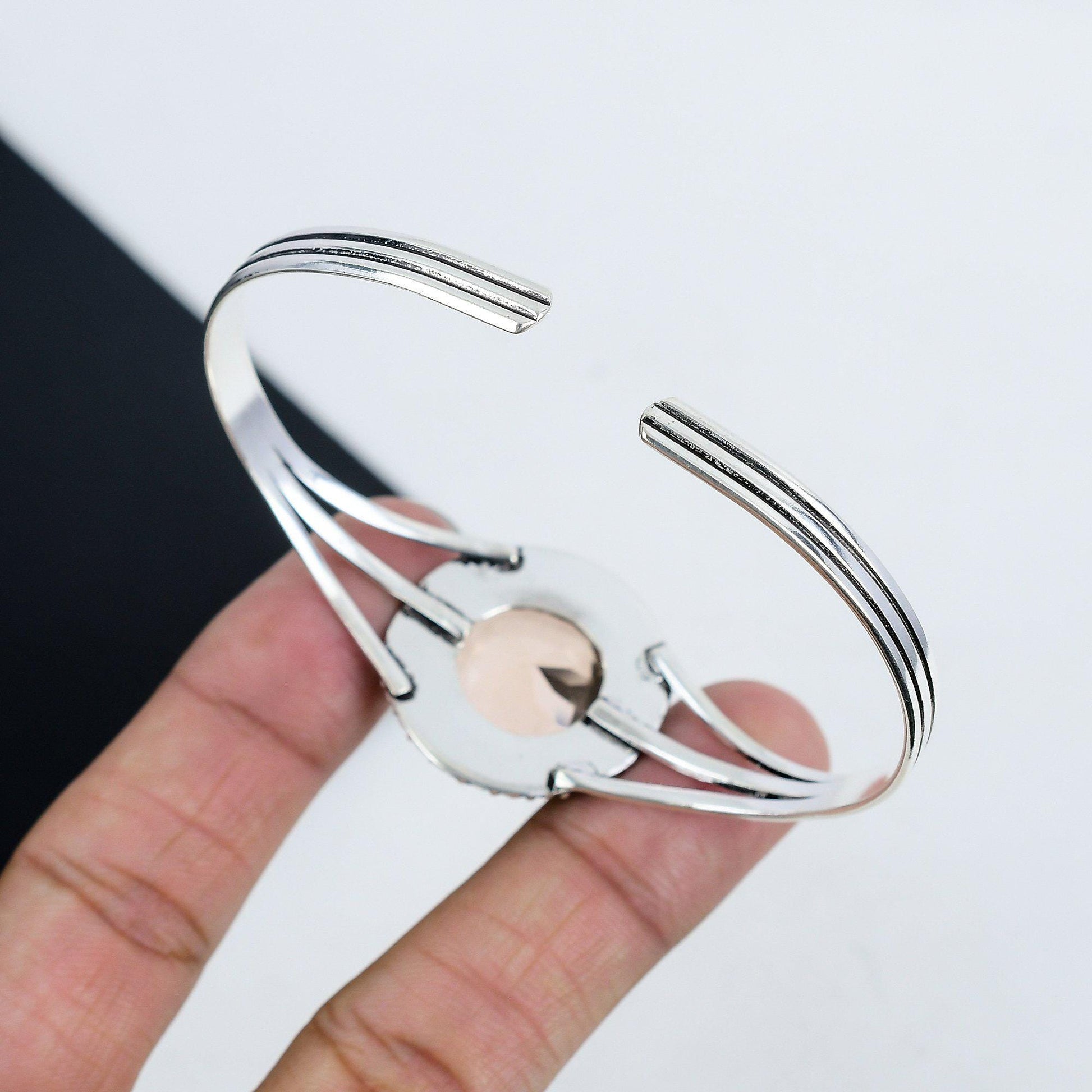Embrace elegance with our exquisite sterling silver bracelet, featuring a stunning round peach gemstone centerpiece.