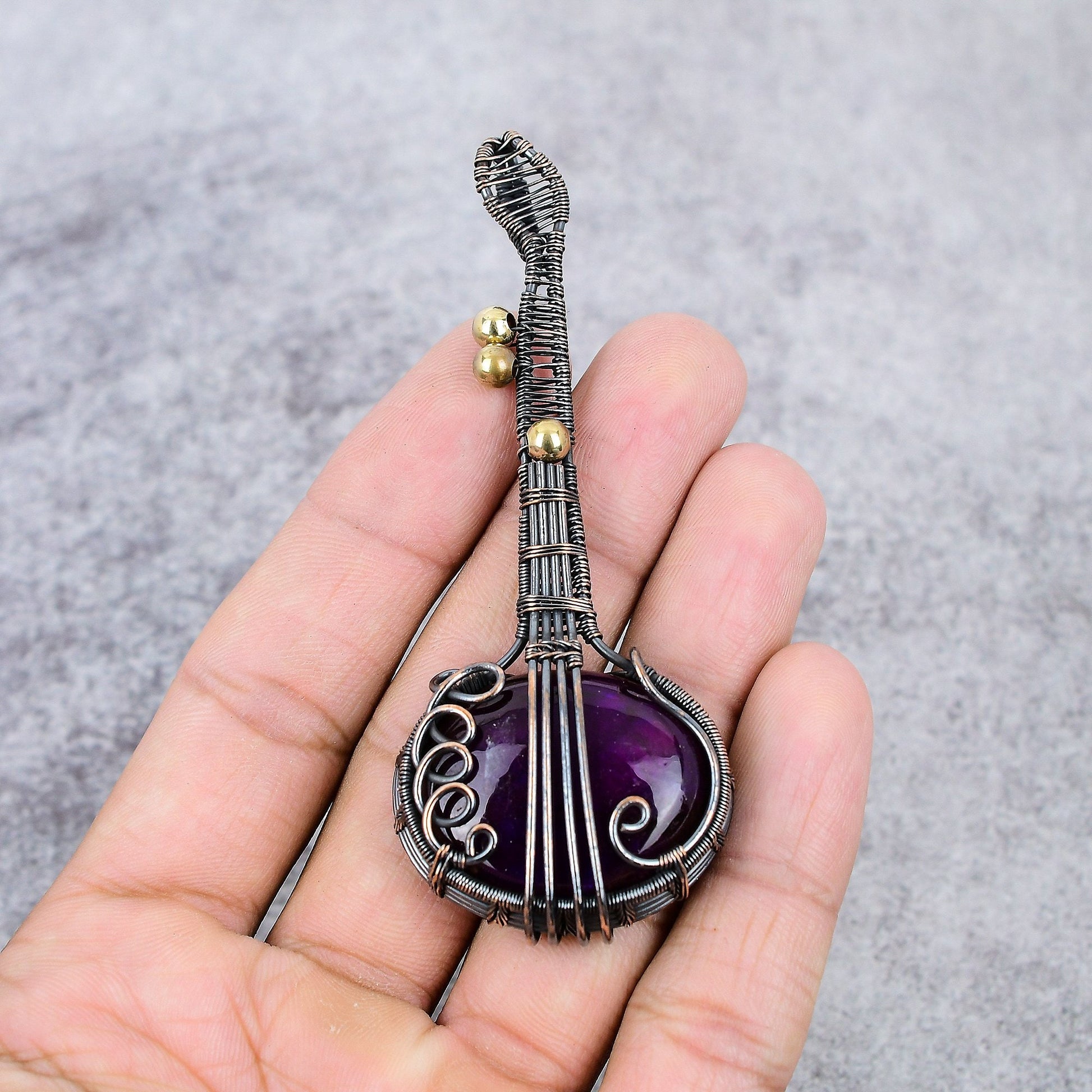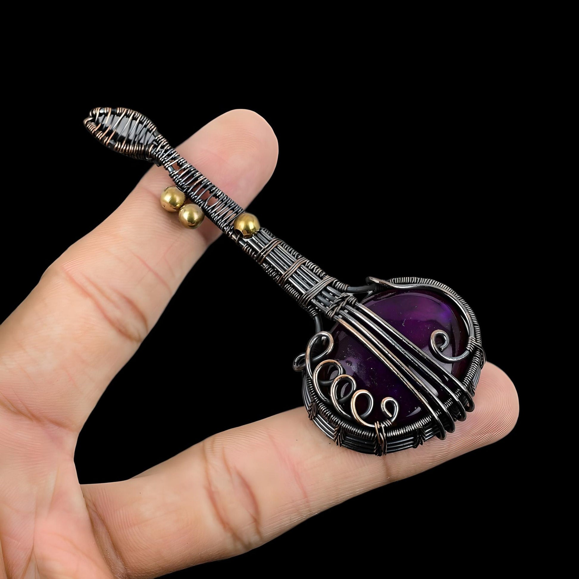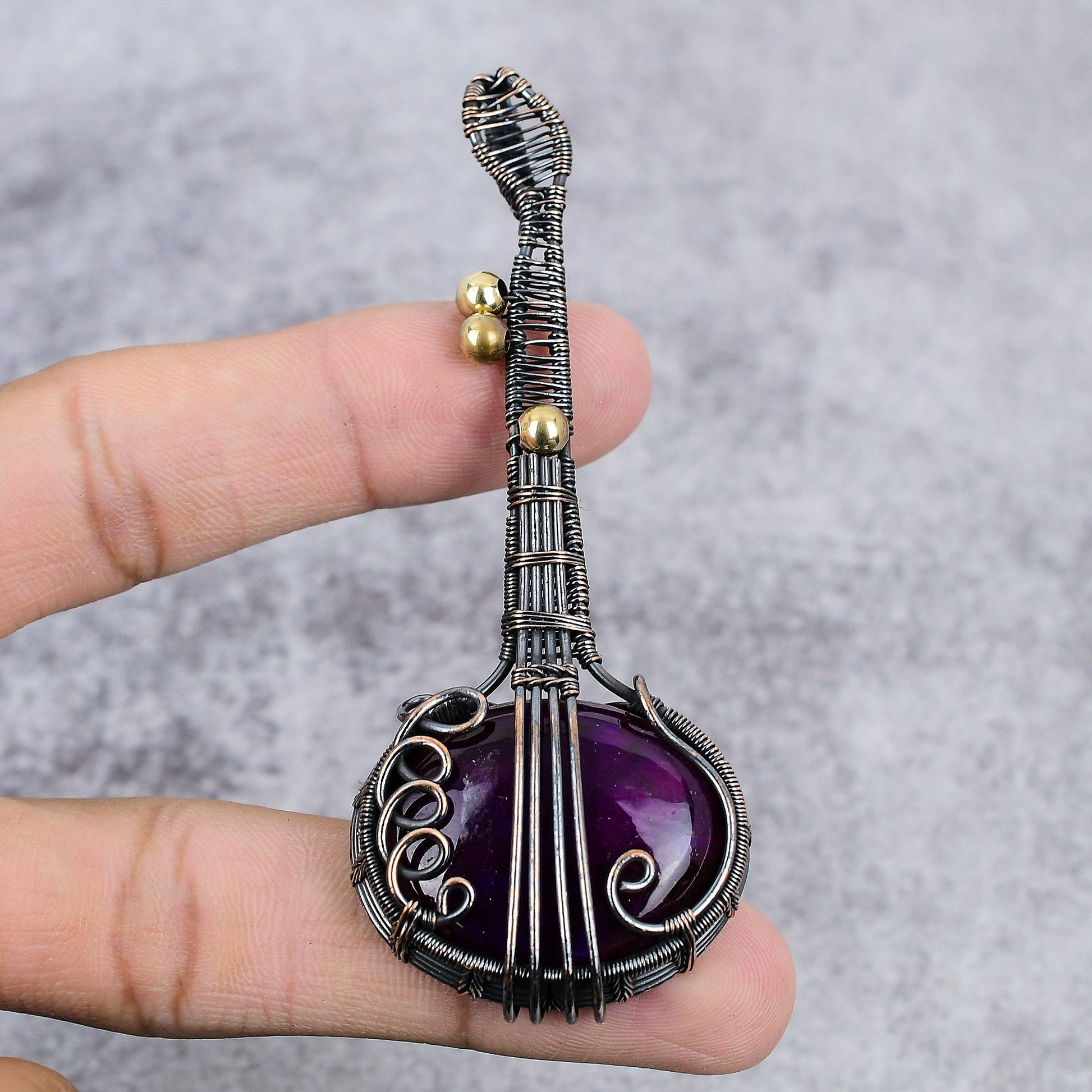 Featuring a rich purple gemstone, this piece is wrapped in intricately woven wire detailing, designed to capture the essence of timeless beauty.