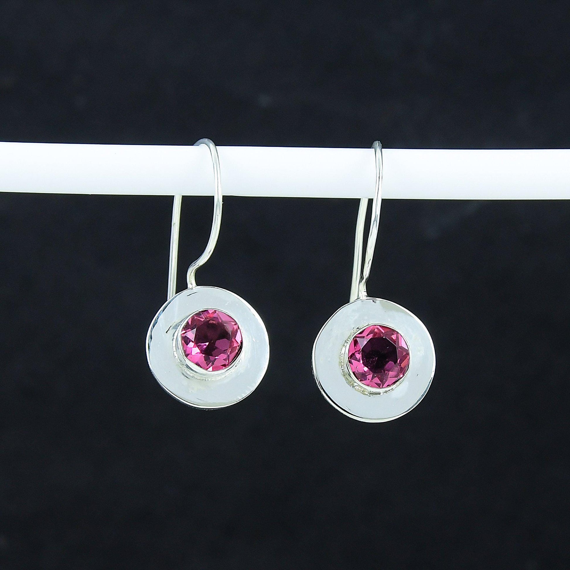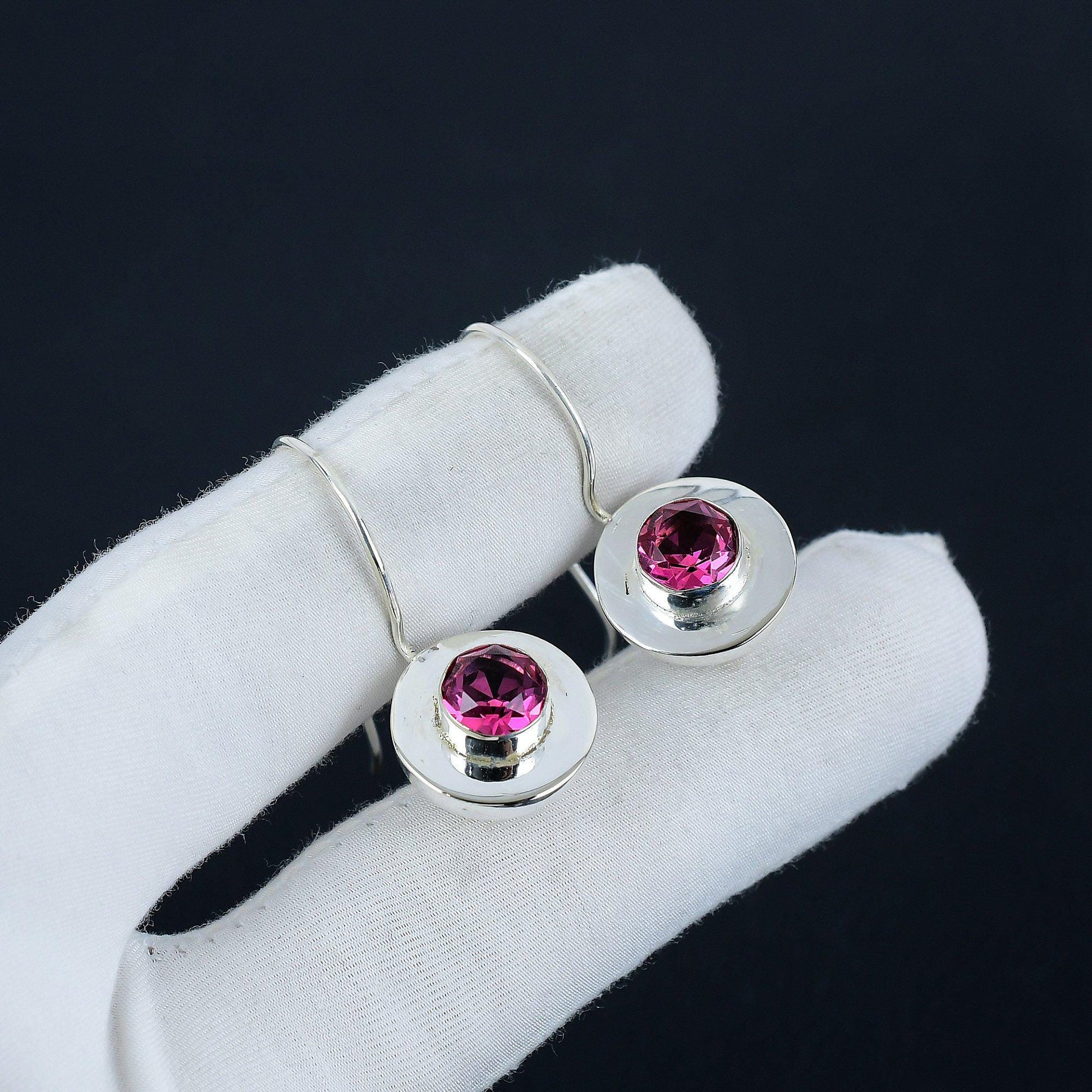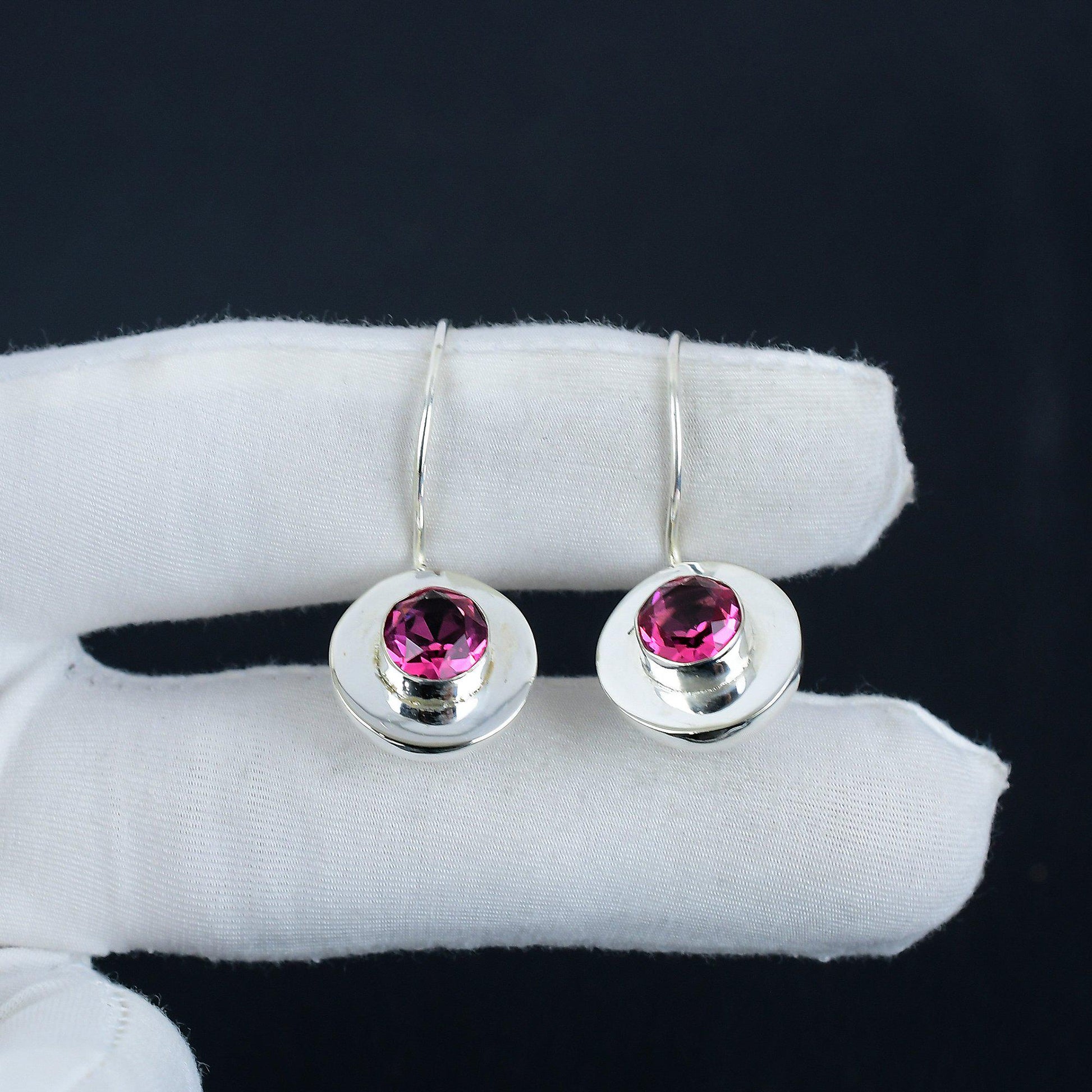 Discover elegance with these stunning silver earrings, expertly crafted to showcase brilliant pink gemstones.