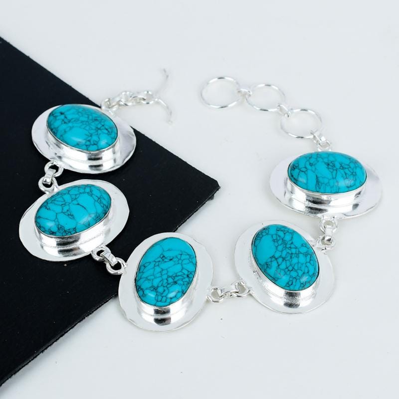 - Vibrant turquoise stones, each uniquely patterned with natural veining, ensuring no two pieces are exactly alike.