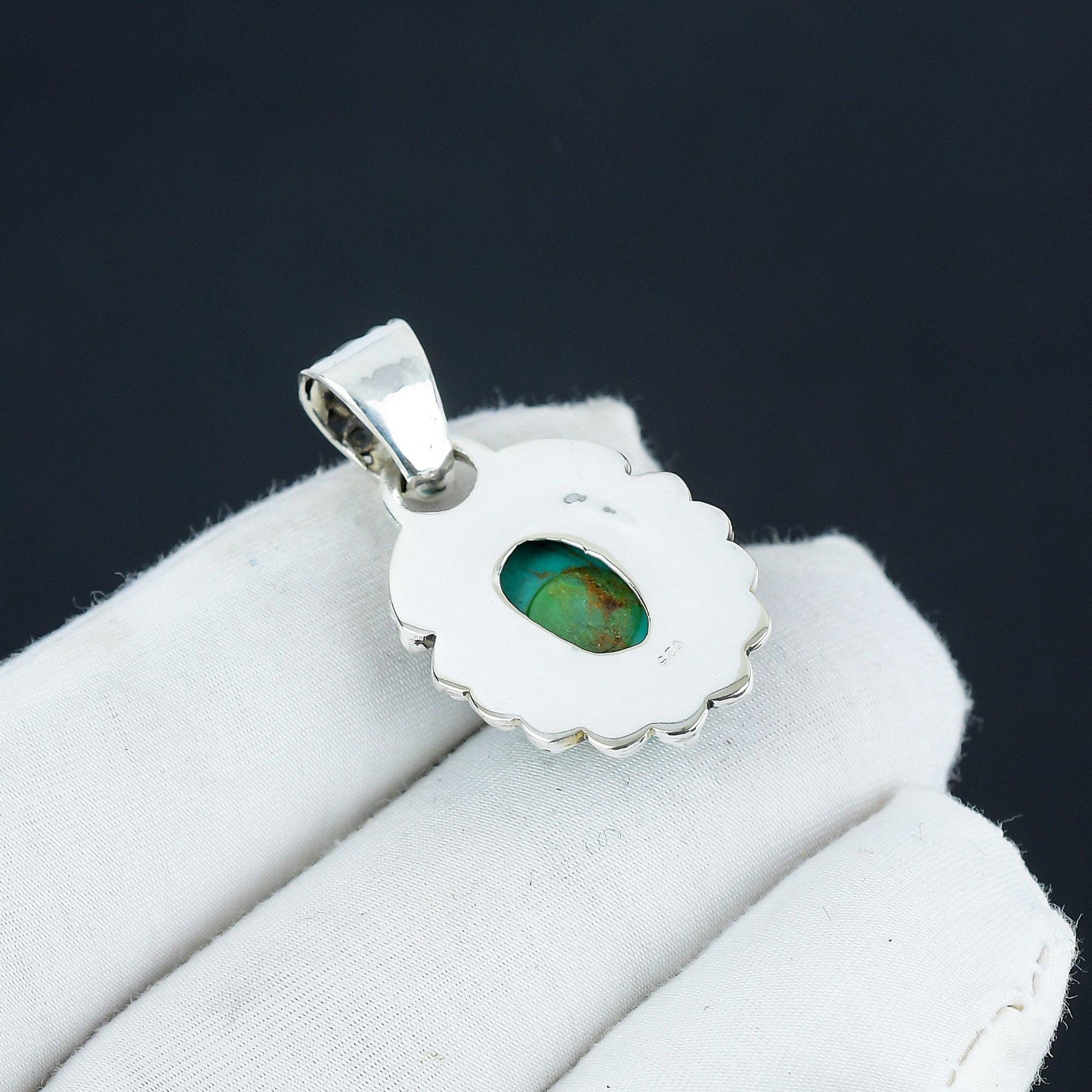 Featuring a stunning oval turquoise stone, the pendant is set in exquisite sterling silver, complemented by intricate bead detailing that enhances its allure.