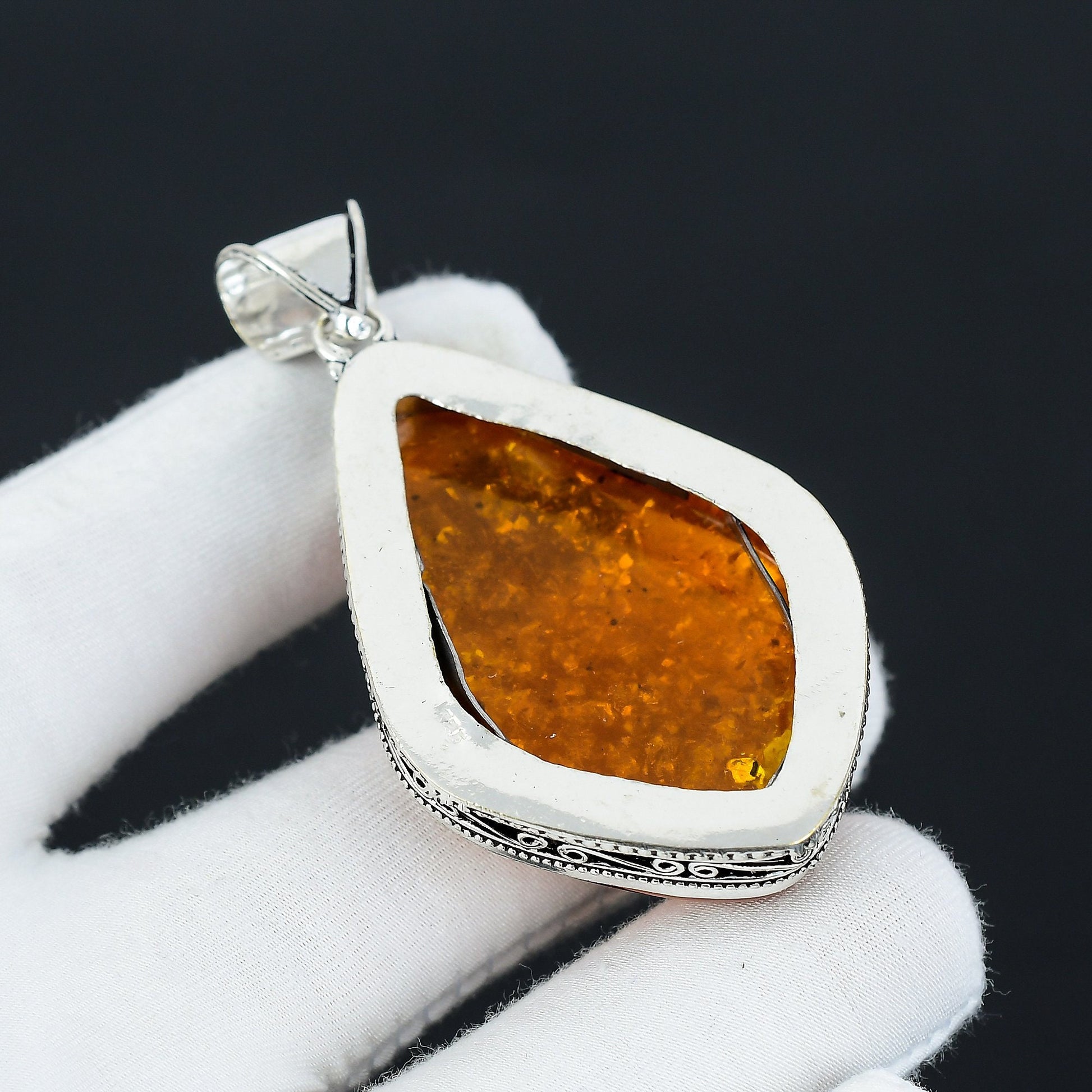Enhance your look and embrace the enchanting charm of amber with this magnificent pendant.