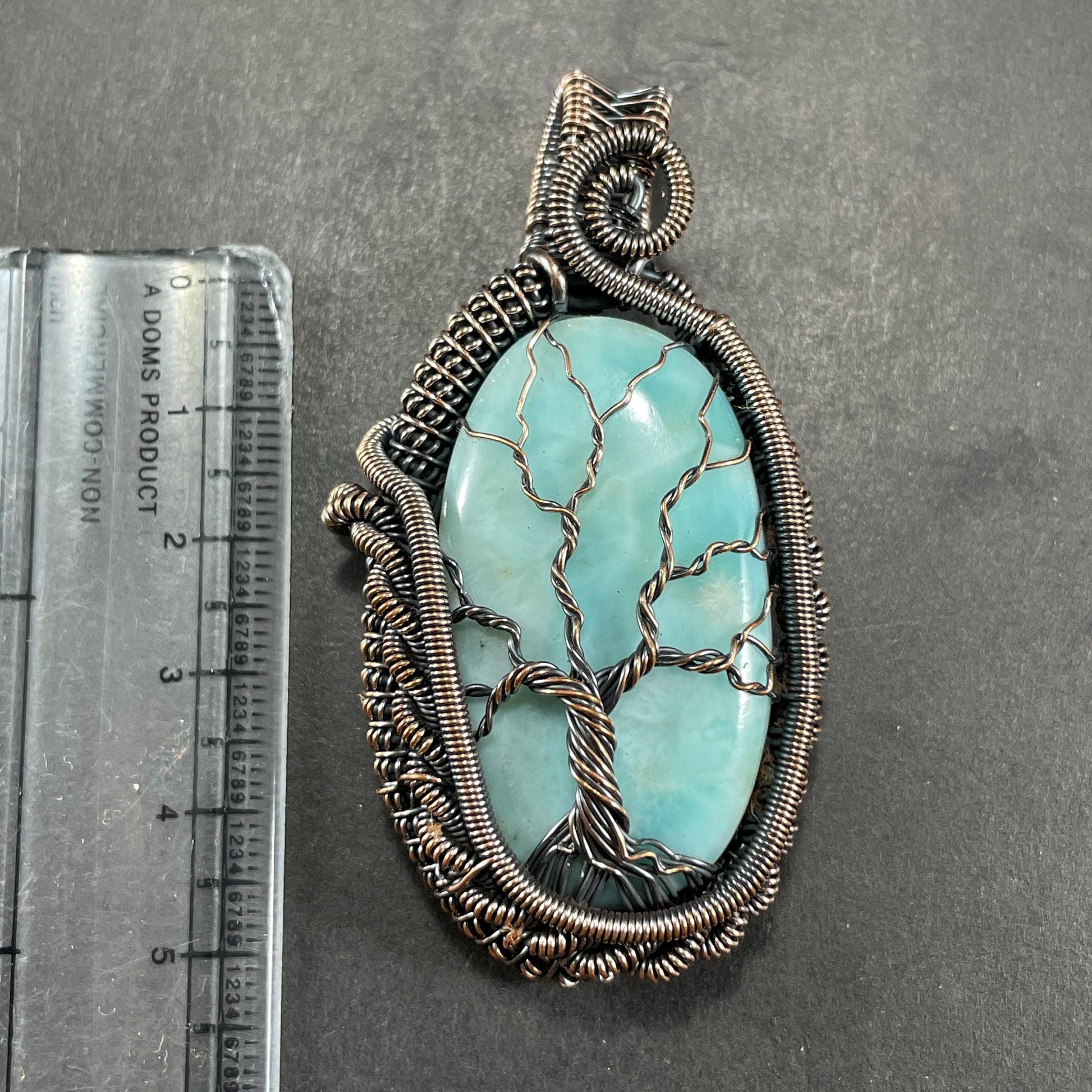 This captivating piece features a serene turquoise stone, intricately wrapped in delicate metal to form a lifelike tree, symbolizing strength and growth.