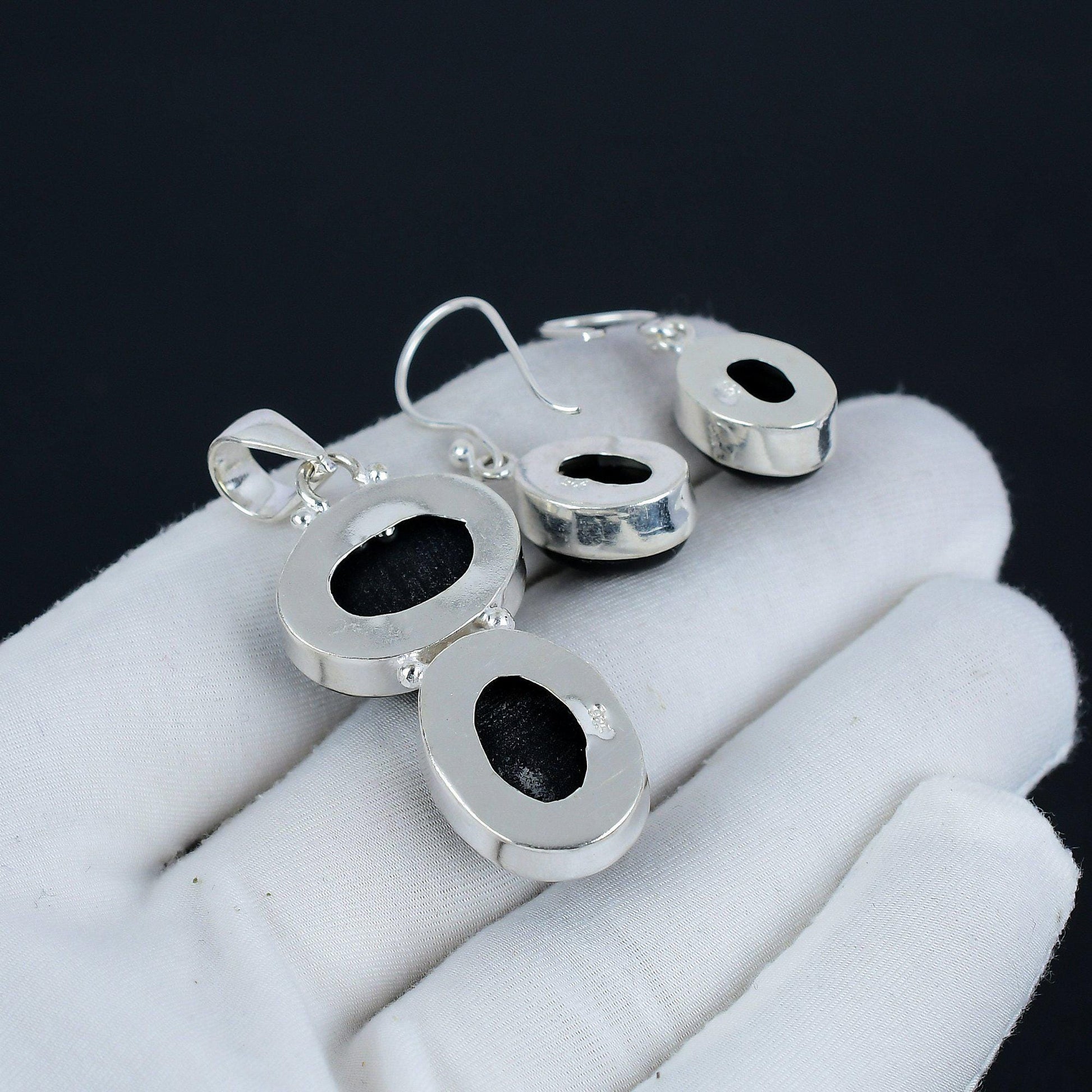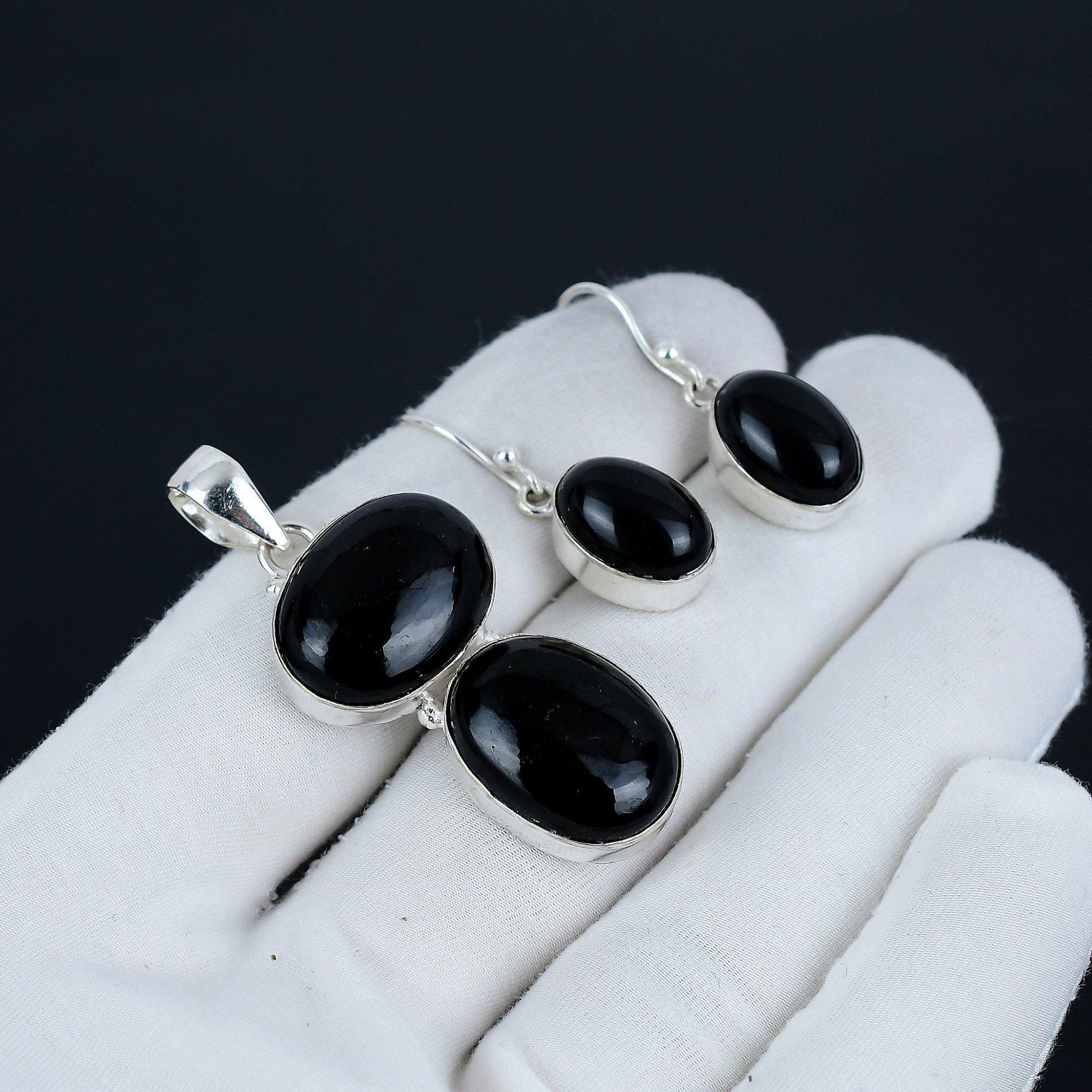 Indulge in elegant sophistication with this exquisite black onyx jewelry set. Featuring a stunning pendant paired with matching earrings, each piece showcases high-quality black onyx cabochons set in polished silver settings.