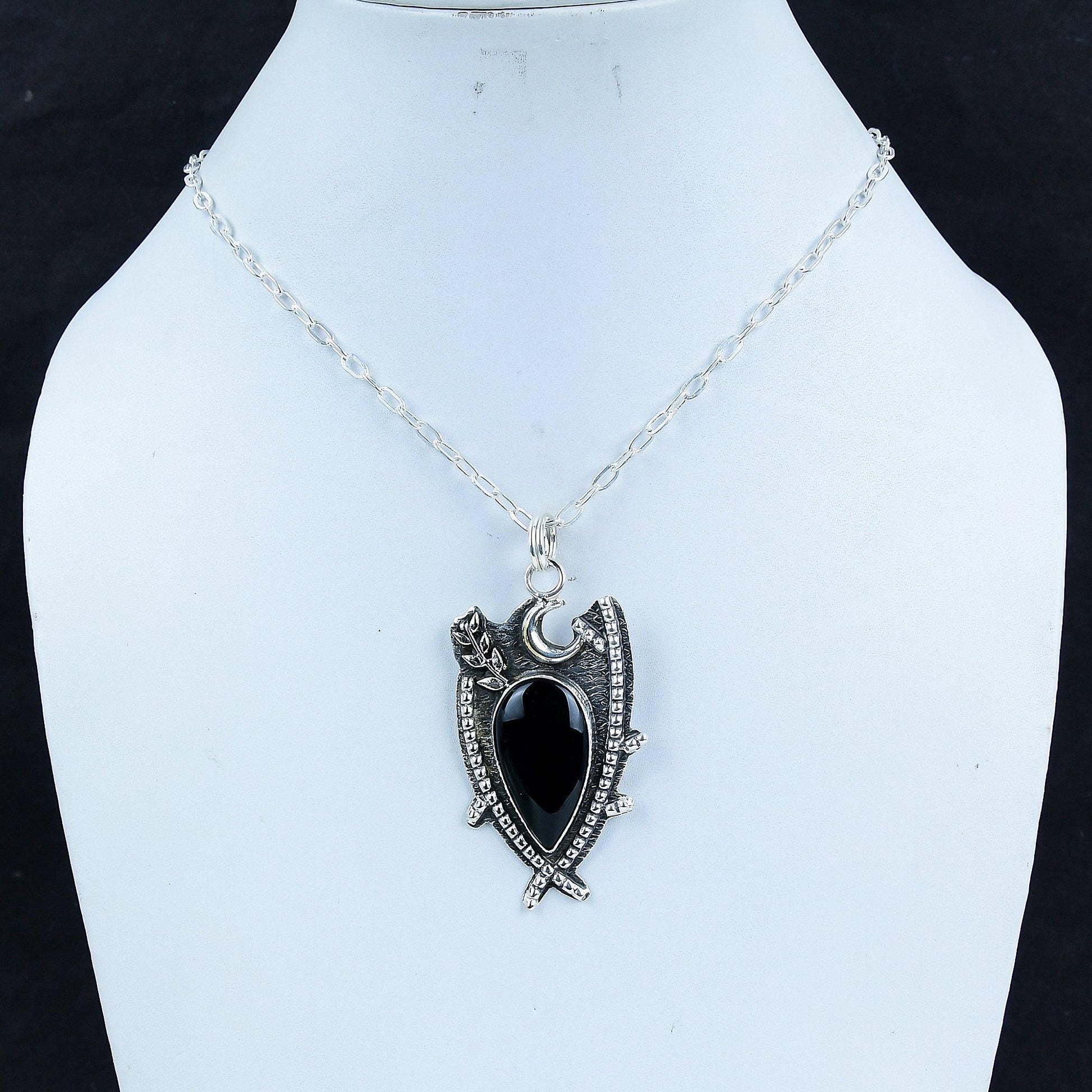 Discover timeless elegance with our exquisite Silver and Onyx Leaf Pendant.