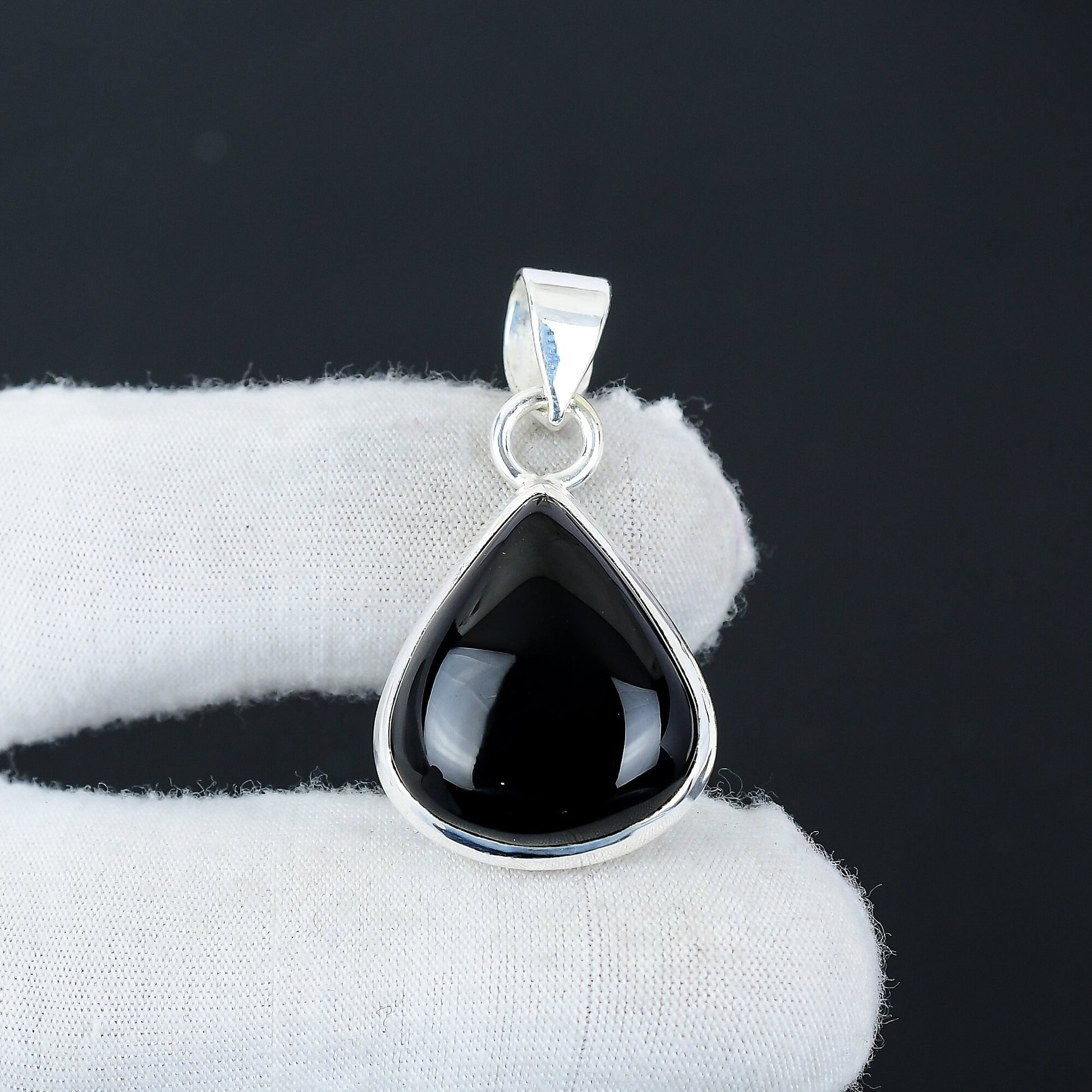 Expertly crafted with sterling silver, this pendant showcases a stunning black onyx stone in a timeless tear drop shape.