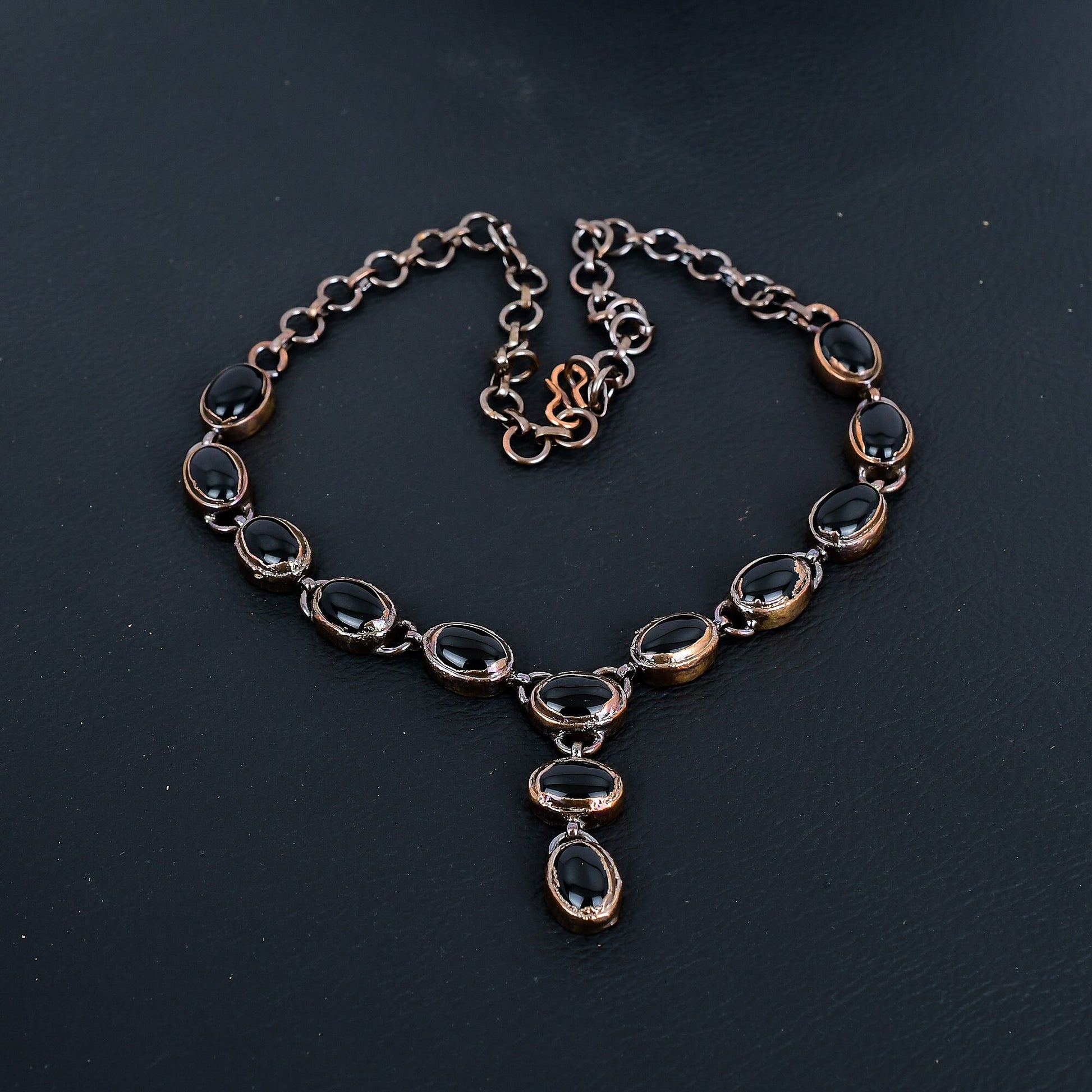 Discover the timeless elegance of our Black Onyx Chain Necklace. This exquisite piece features oval-shaped black onyx stones, each set in a unique, rustic metal frame.