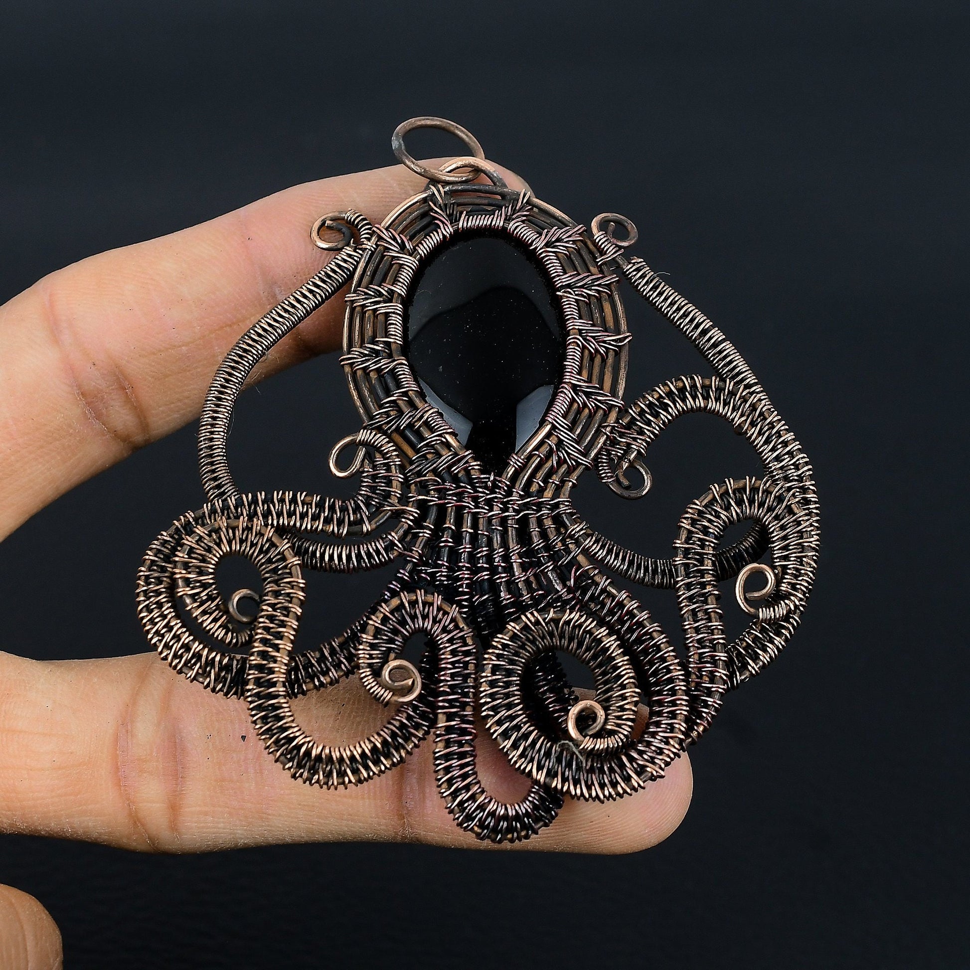 This pendant features a beautifully intricate wire-wrap design, mimicking the graceful curves of an octopus.