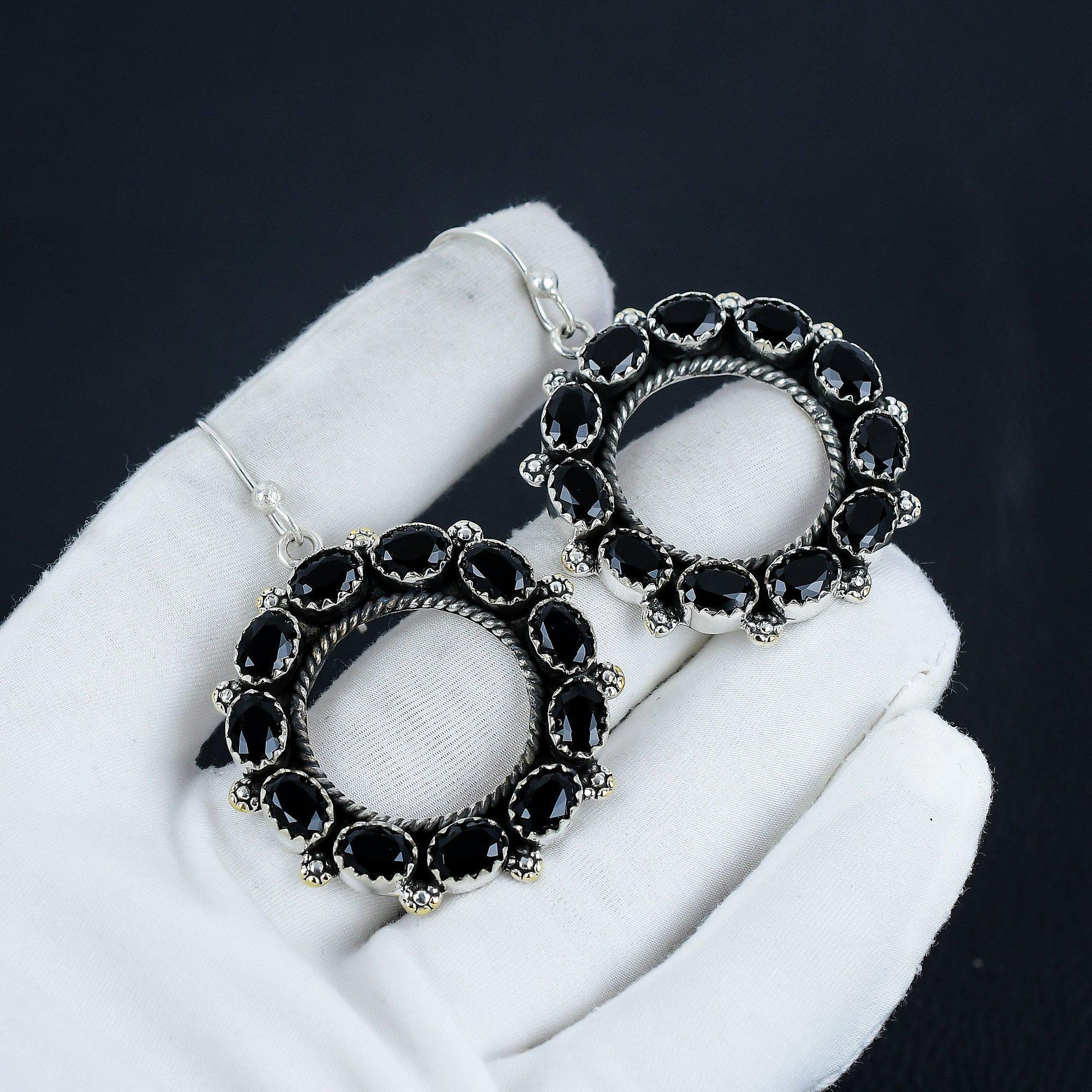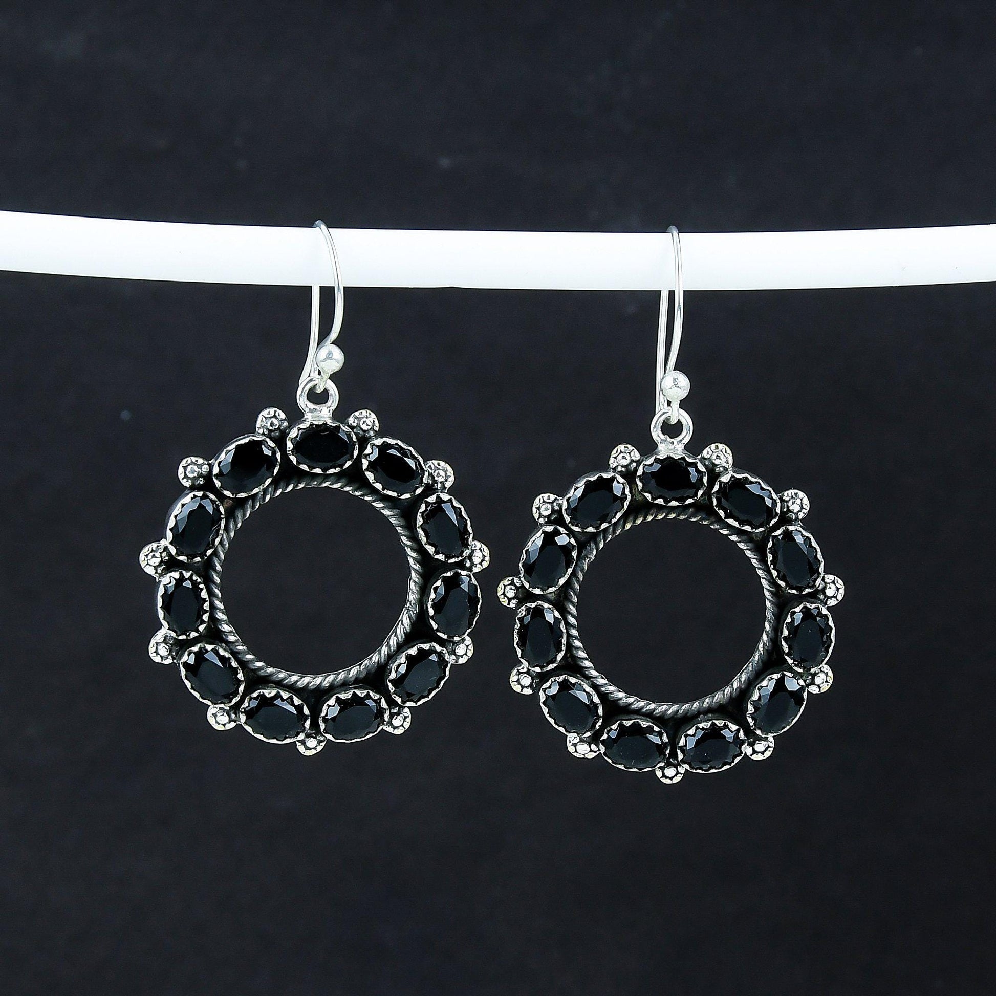 - Design: Intricate circular hoop design embellished with sparkling black stones.