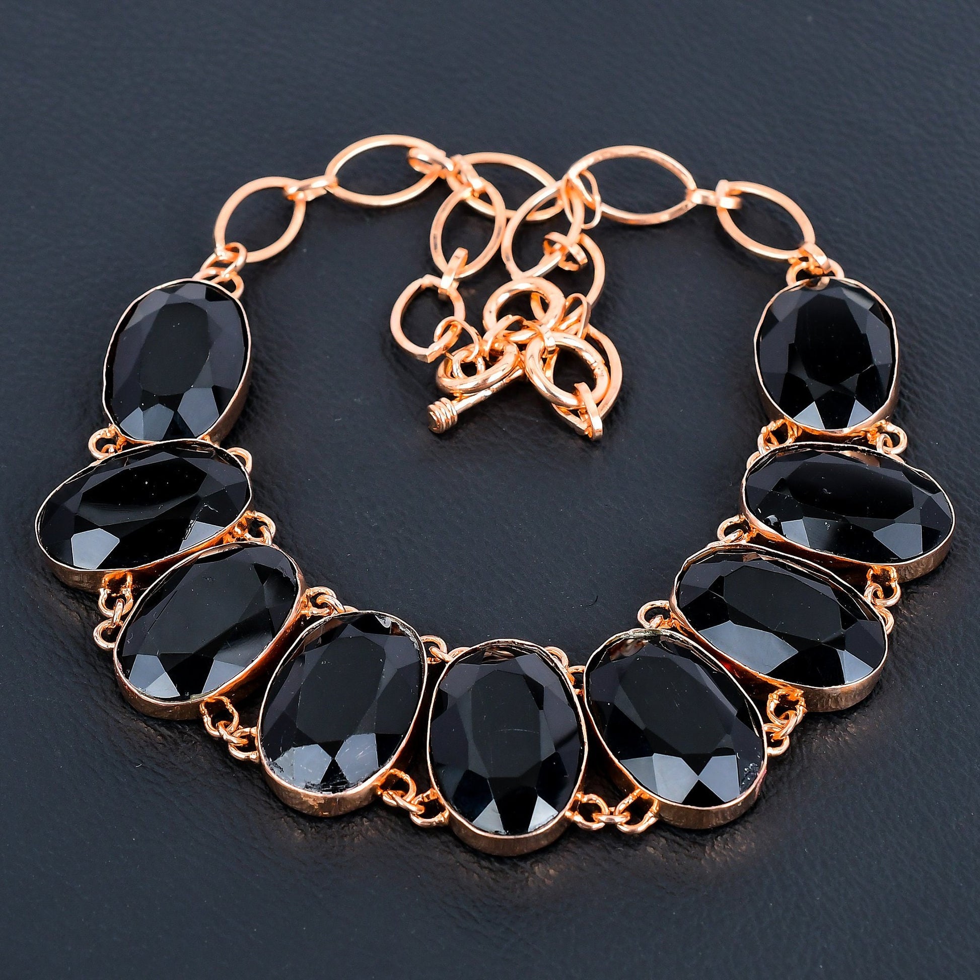 Elevate your style with this exquisite statement bracelet, featuring stunning faceted black stones that exude elegance and sophistication.