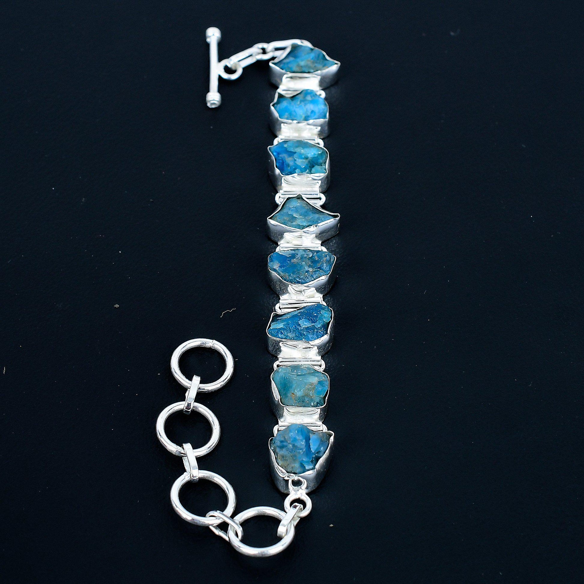 Elevate your style with this exquisite bracelet, featuring a series of stunning turquoise stones. Each stone is uniquely shaped and set in high-quality silver, creating a captivating design that embodies elegance and sophistication.