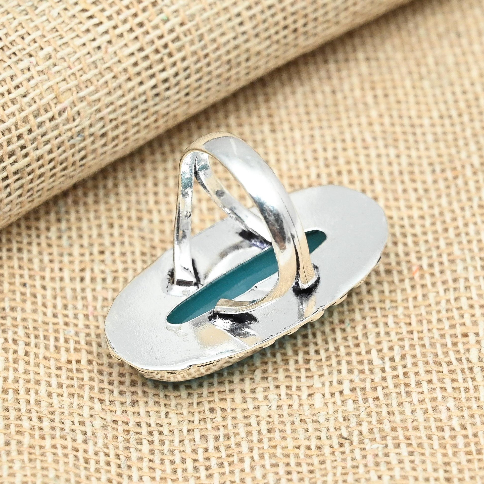 Enhance your elegance with this exquisite turquoise statement ring, an embodiment of timeless sophistication and contemporary design.