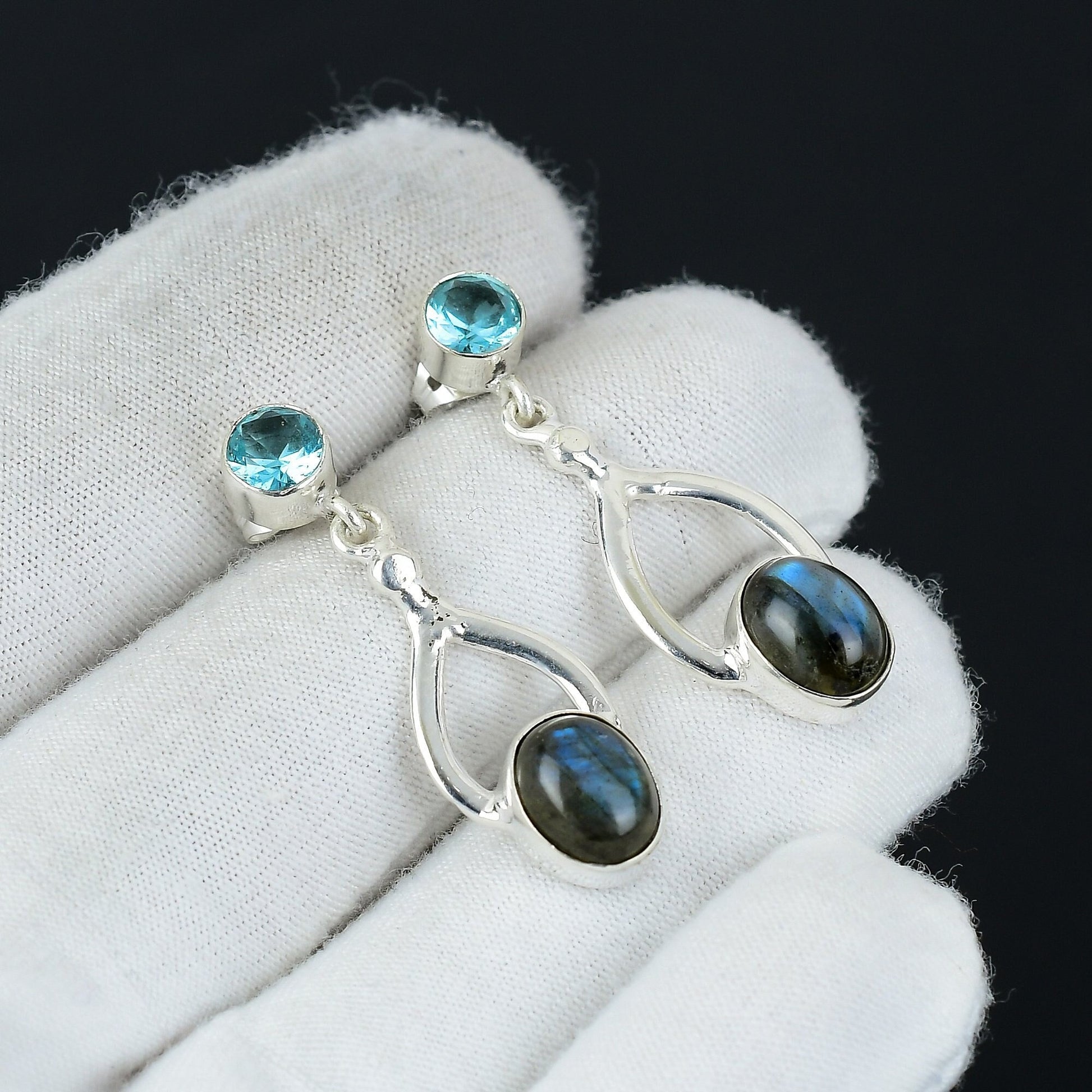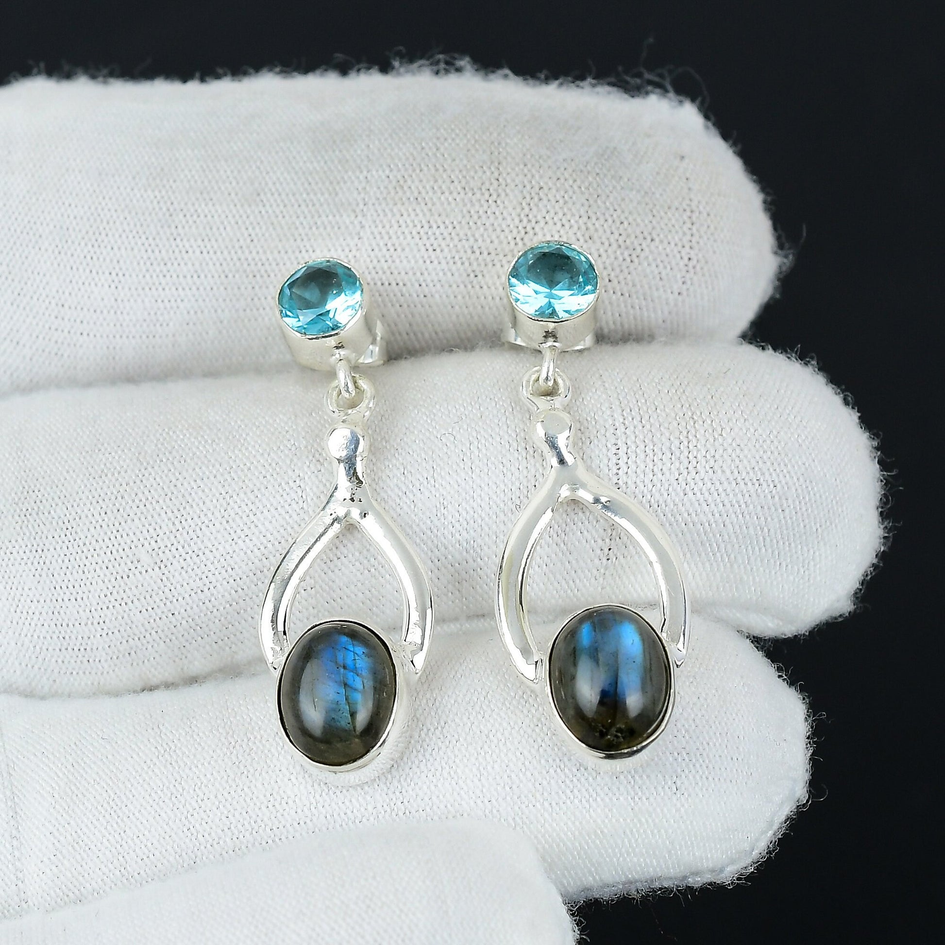 - Lustrous Labradorite: The tear-drop design showcases mesmerizing labradorite stones, known for their iridescent play of color.