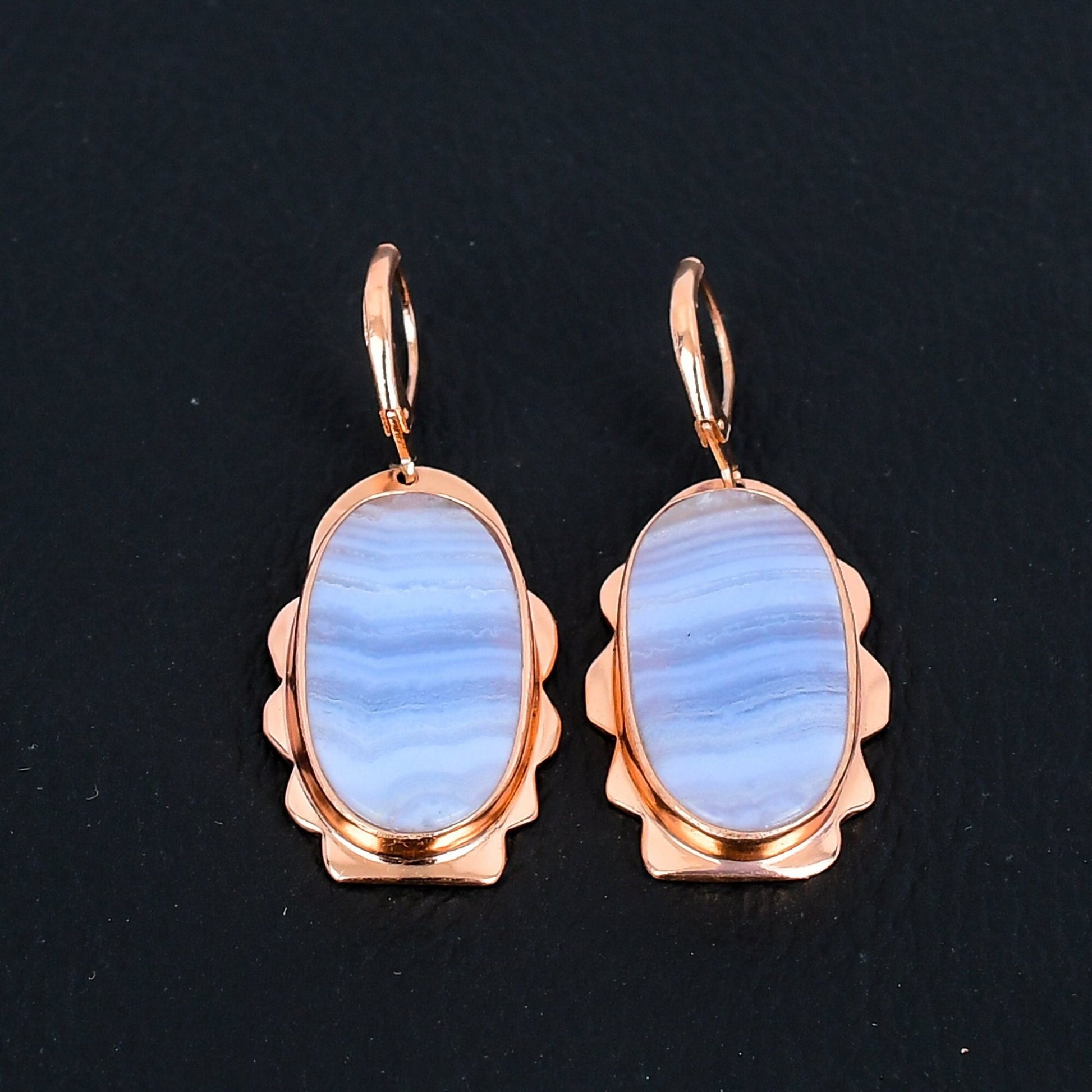 Add a touch of elegance to your look with this exquisite pair of blue lace agate earrings. Perfect for gifting or treating yourself to something special.