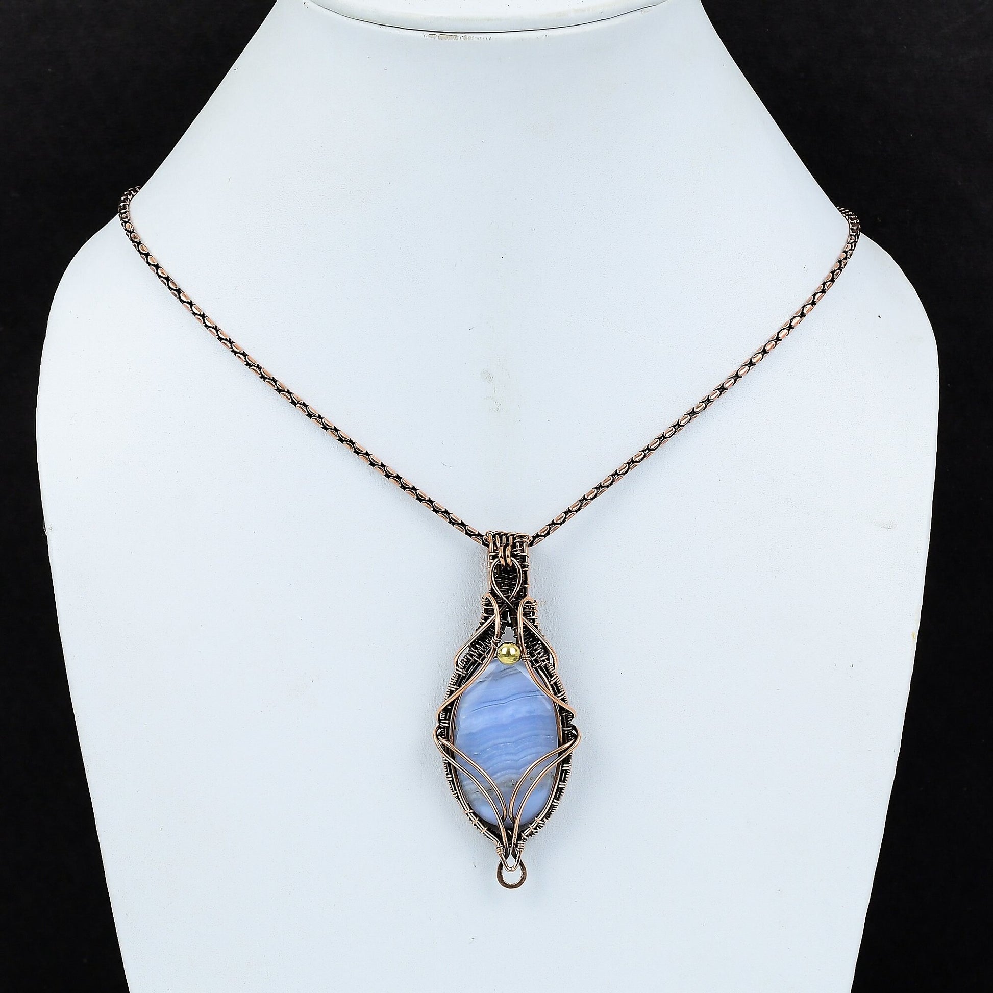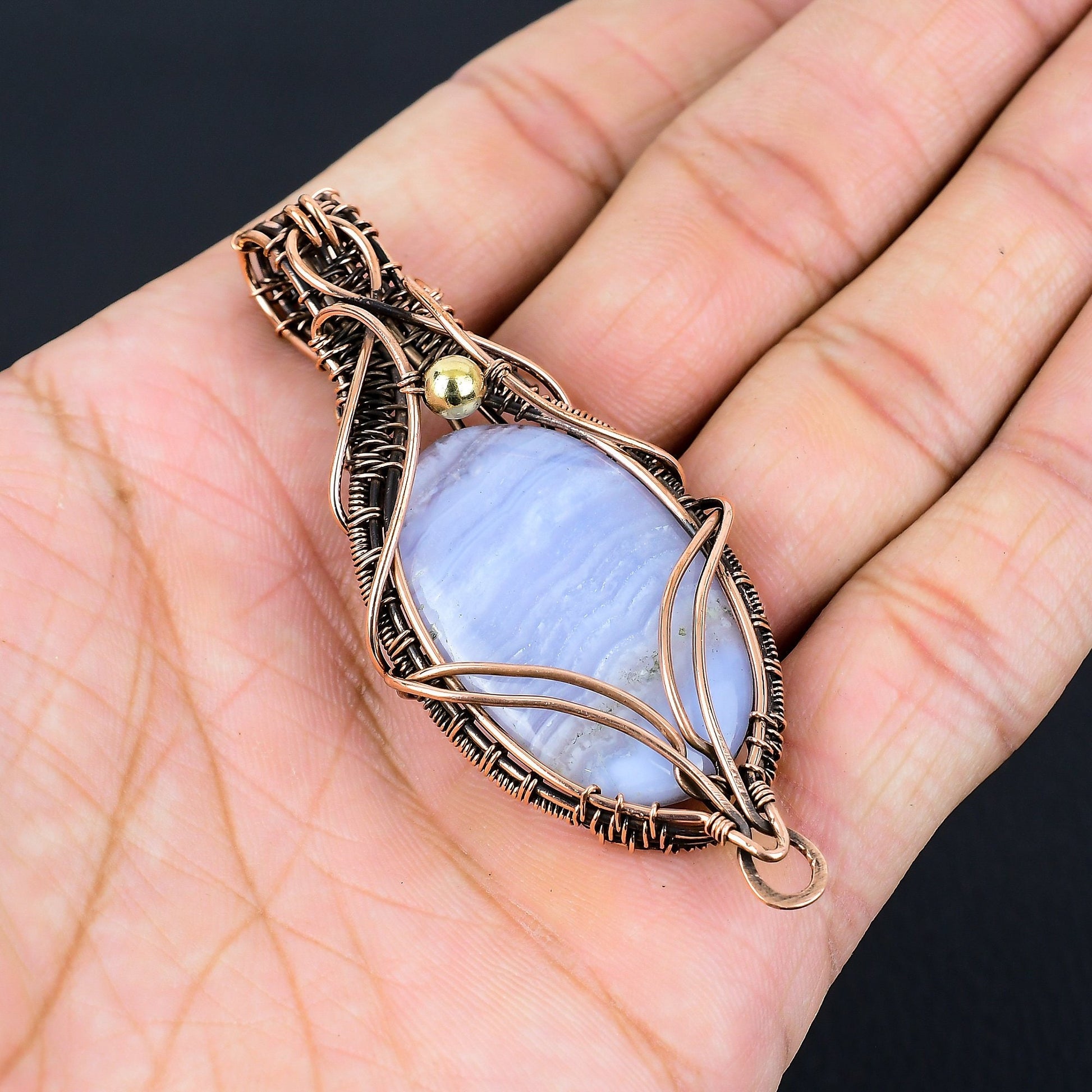 Introducing our exquisite handcrafted Copper Wire Wrapped Pendant, a true statement piece that combines elegance with artistry. This stunning pendant features a captivating blue stone, artfully encased in intricate copper wire weaving, showcasing the artisan's skill and attention to detail.