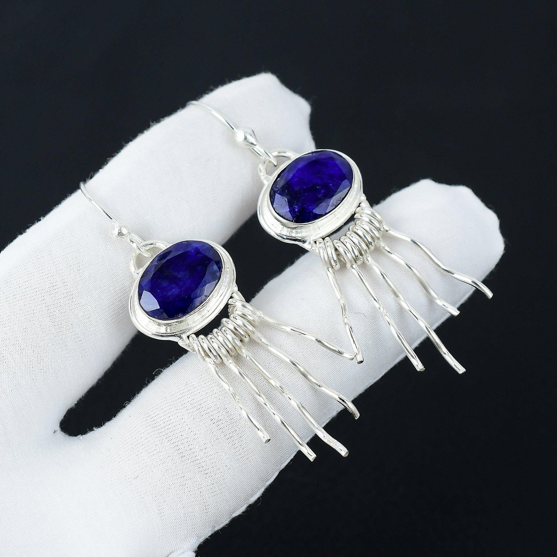 Introducing our exquisite Silver & Sapphire Earrings, a true statement of elegance and sophistication.