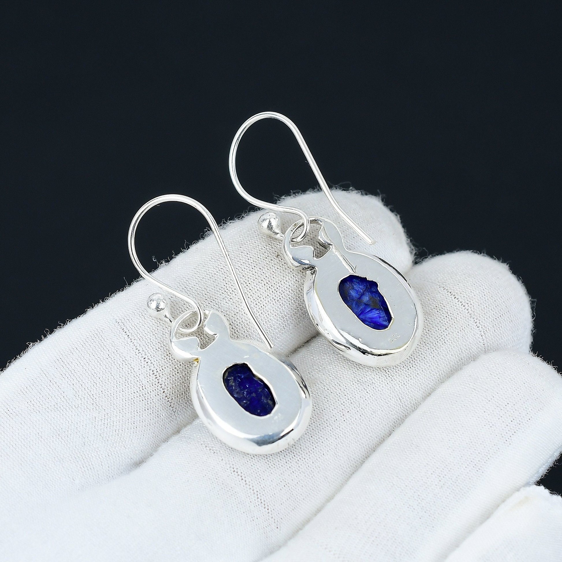 Crafted with precision, these earrings feature stunning royal blue gemstones set in a sleek silver frame.