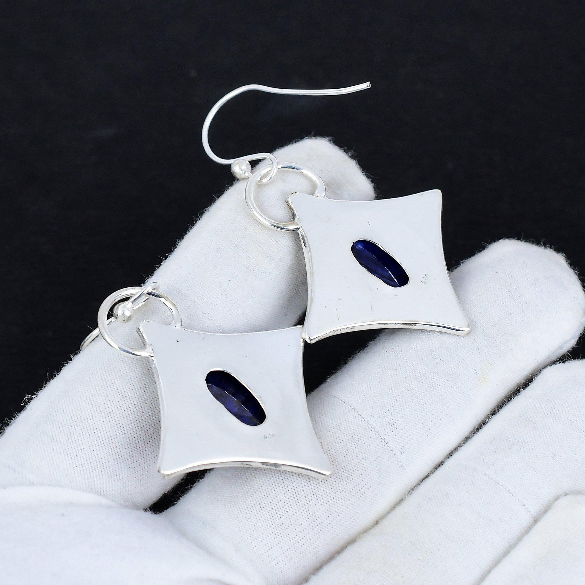 Elevate your style with these exquisite handcrafted earrings. Featuring a stunning deep blue gemstone, these earrings are set in a unique antique-style silver frame.