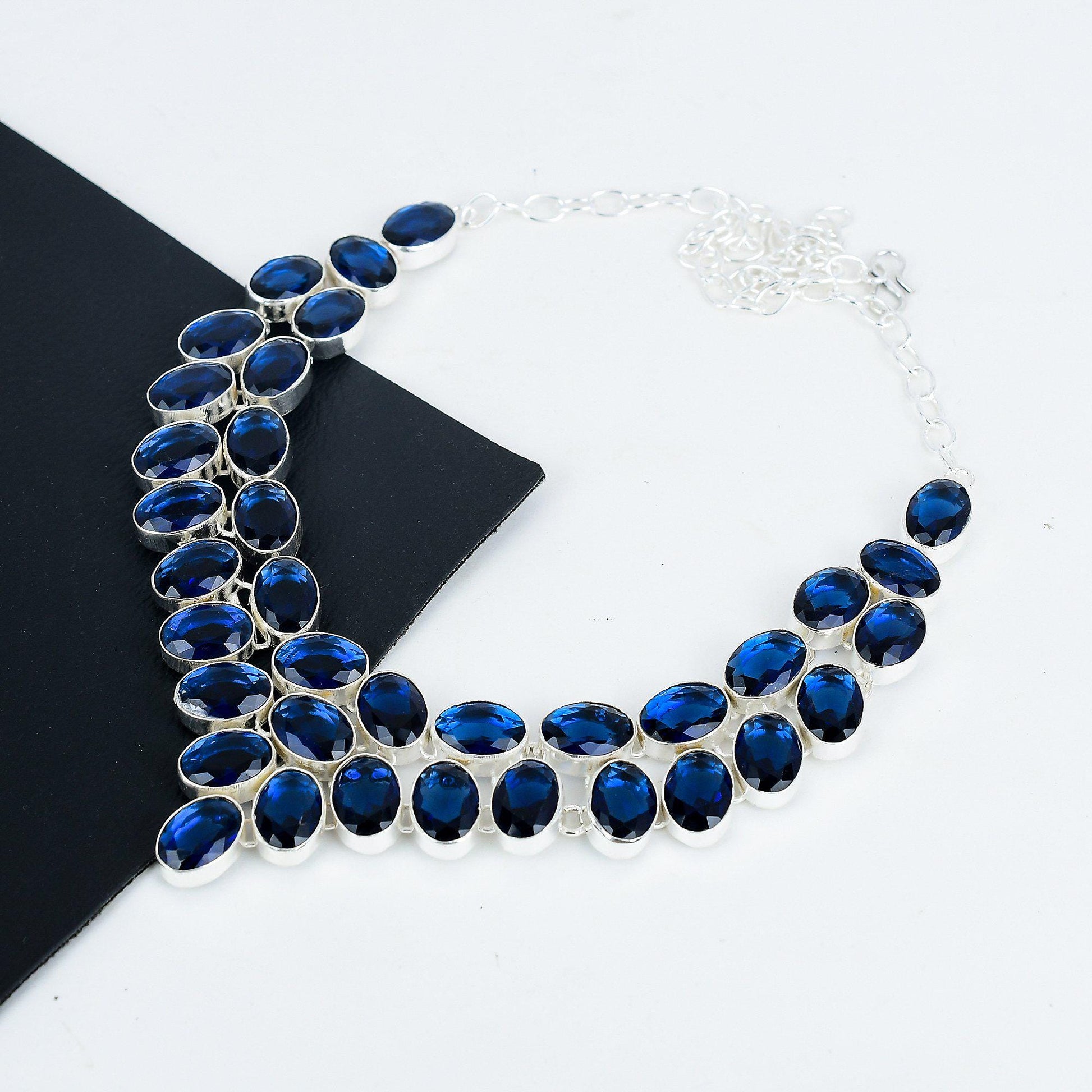 Enhance your elegance with this exquisite blue gemstone necklace.