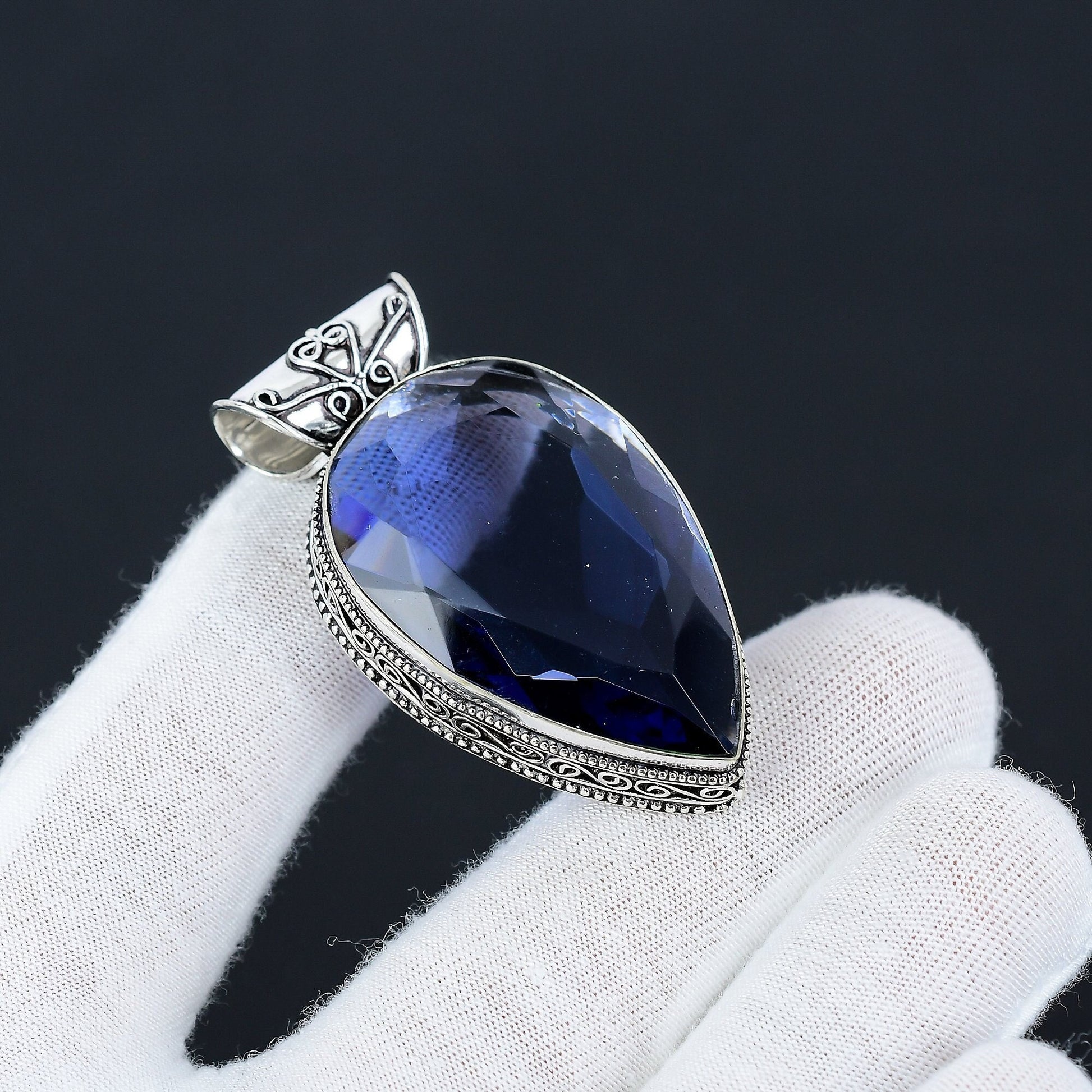 Elevate your elegance with this exquisite teardrop pendant, crafted with a deep blue gemstone that captures the essence of the ocean's mysterious beauty.