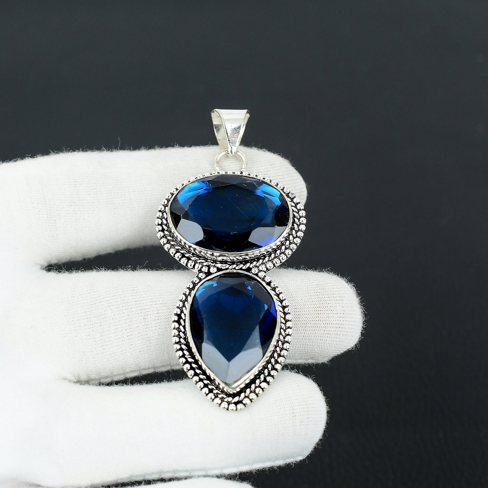 Enhance your elegance with this stunning double blue gemstone pendant.