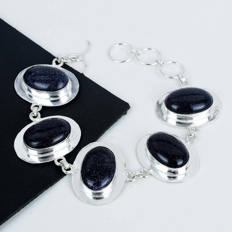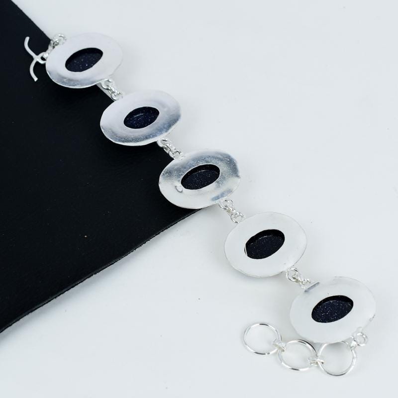 Embrace elegance and sophistication with our exquisite Silver Oval Gemstone Bracelet. Each piece is meticulously crafted to perfection, featuring stunning midnight blue oval stones, enhanced by a shimmering silver setting.
