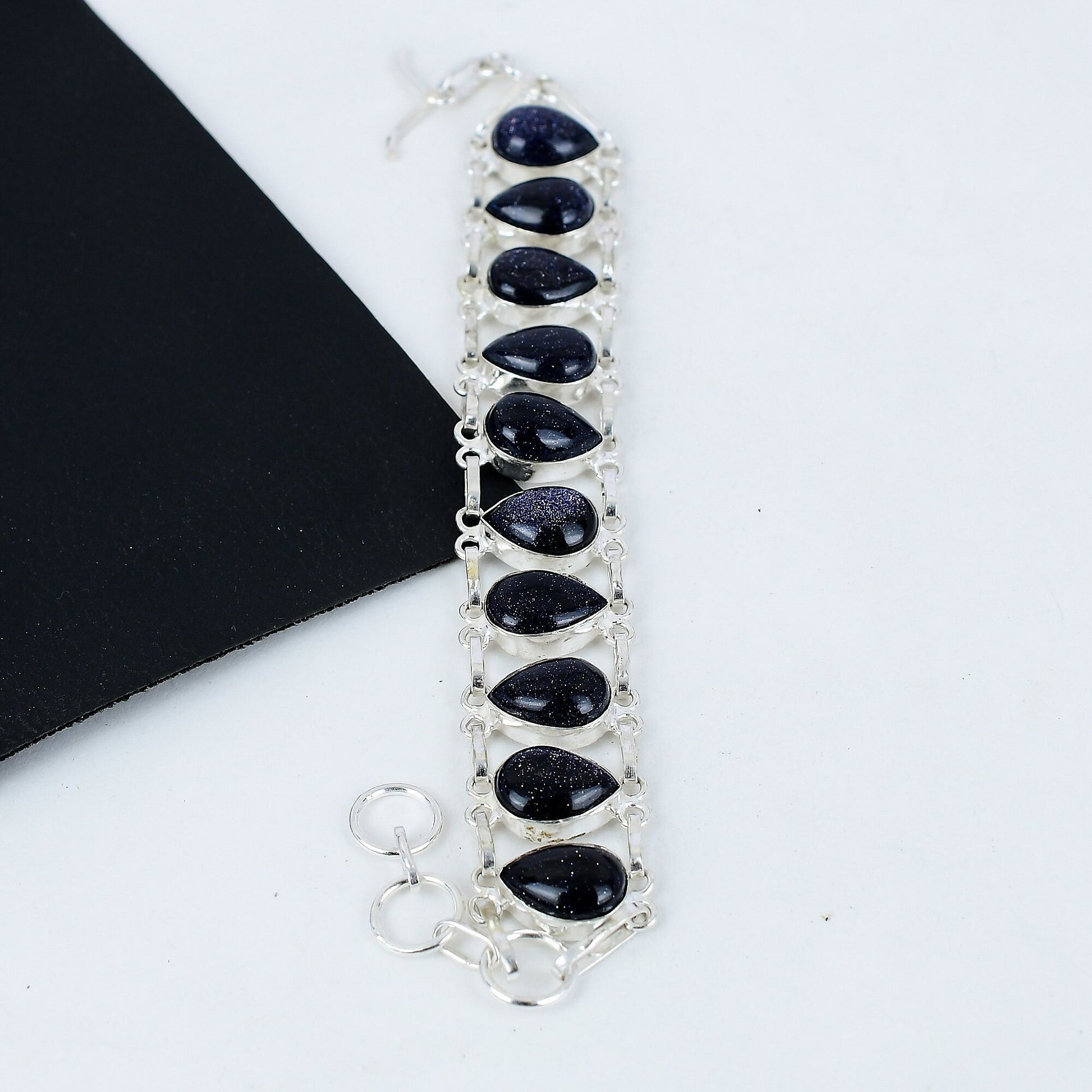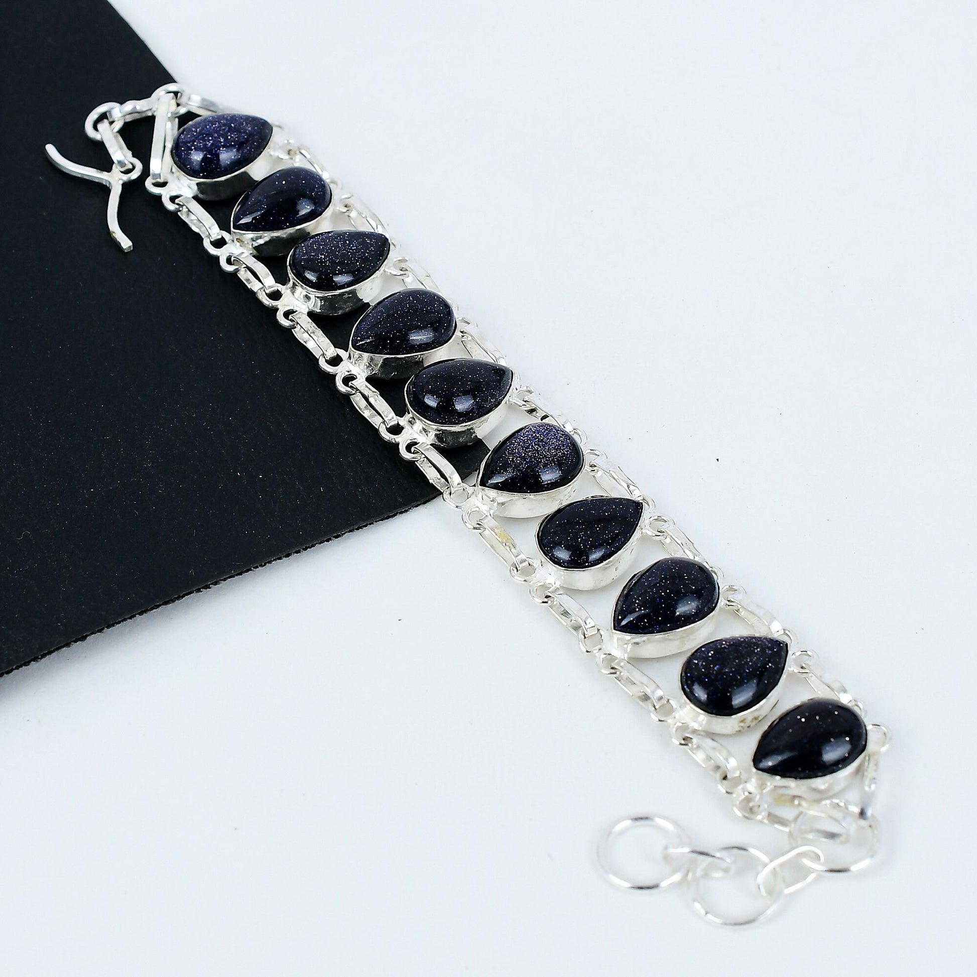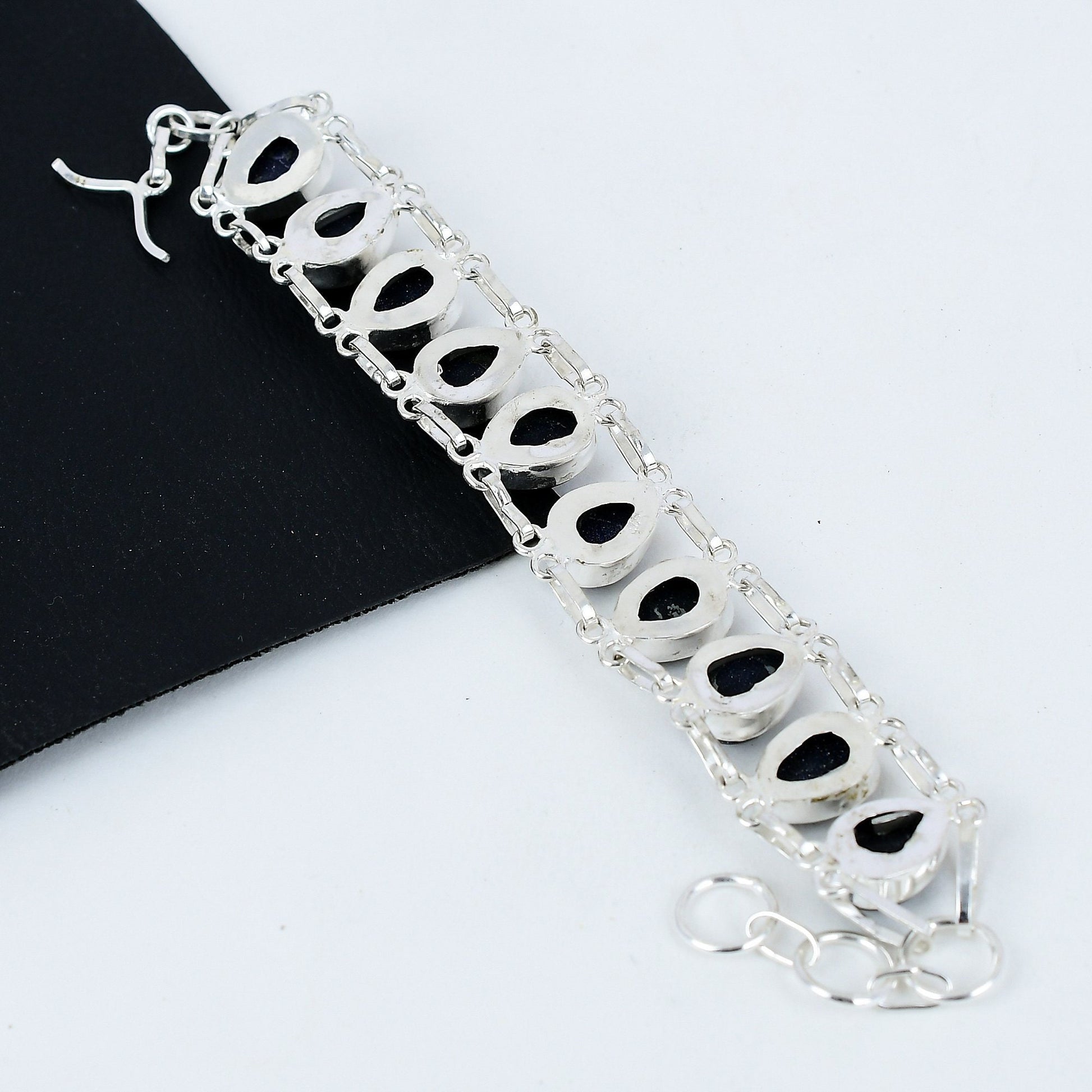 Enhance your elegance with our exquisite bracelet, designed with shimmering dark blue teardrop stones.