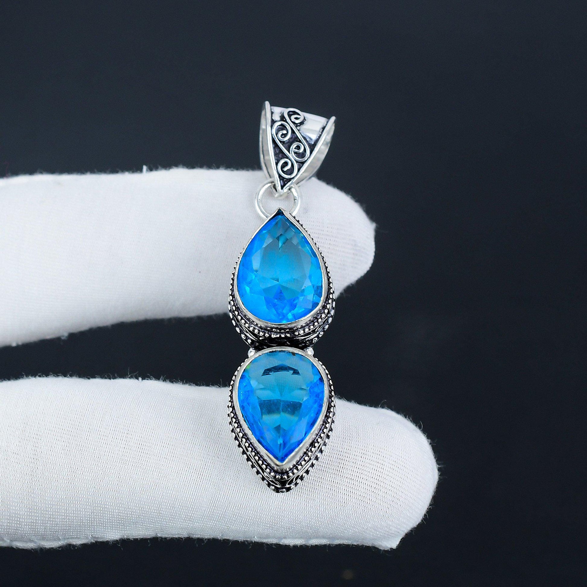 Discover the elegance of our handcrafted dual teardrop pendant, crafted to perfection with exquisite detailing.