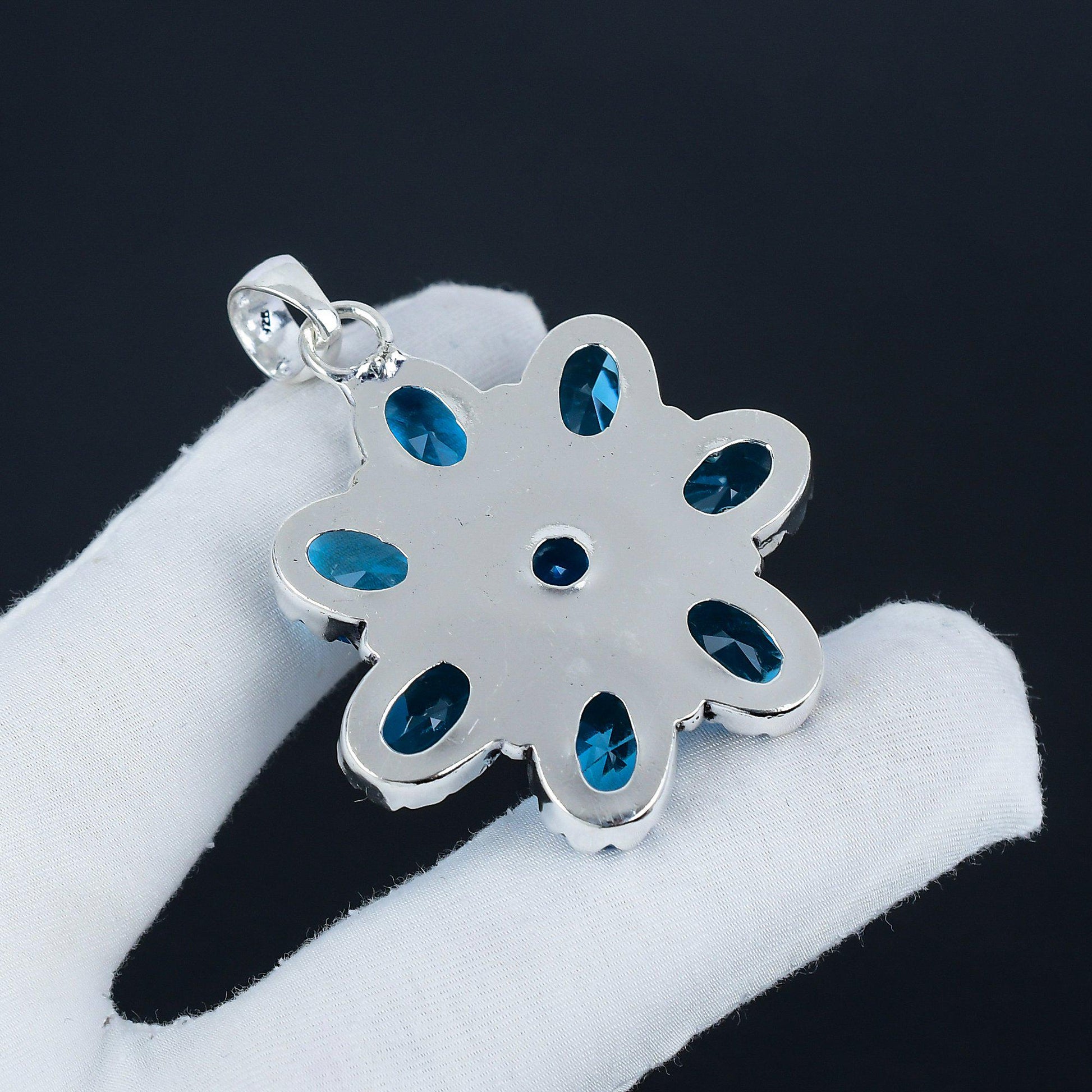 Experience the allure of timeless elegance with our exquisite Blue Gemstone Flower Pendant.