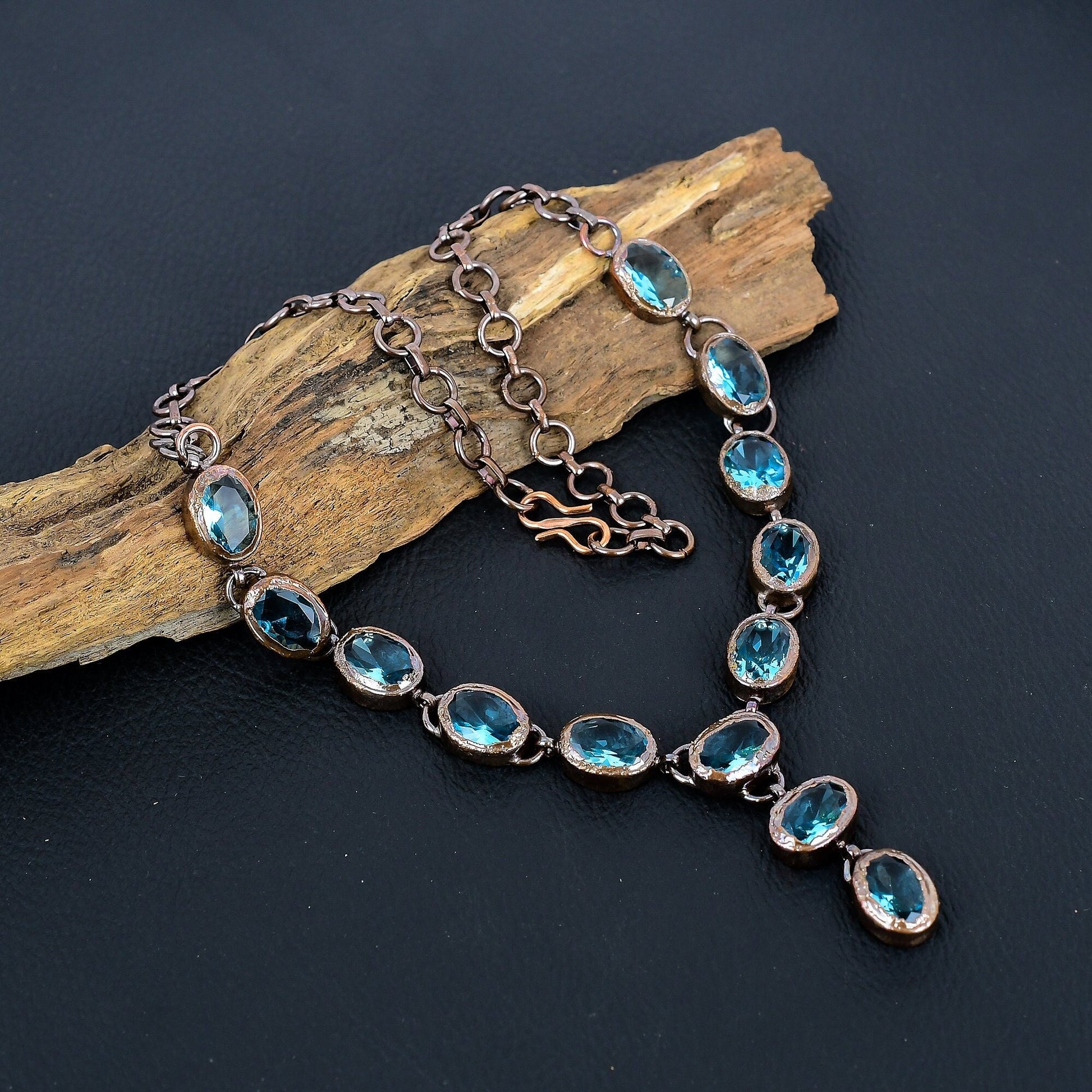 - Elegant Design: This necklace features a series of shimmering blue gemstones set in a rustic, handcrafted metal chain.