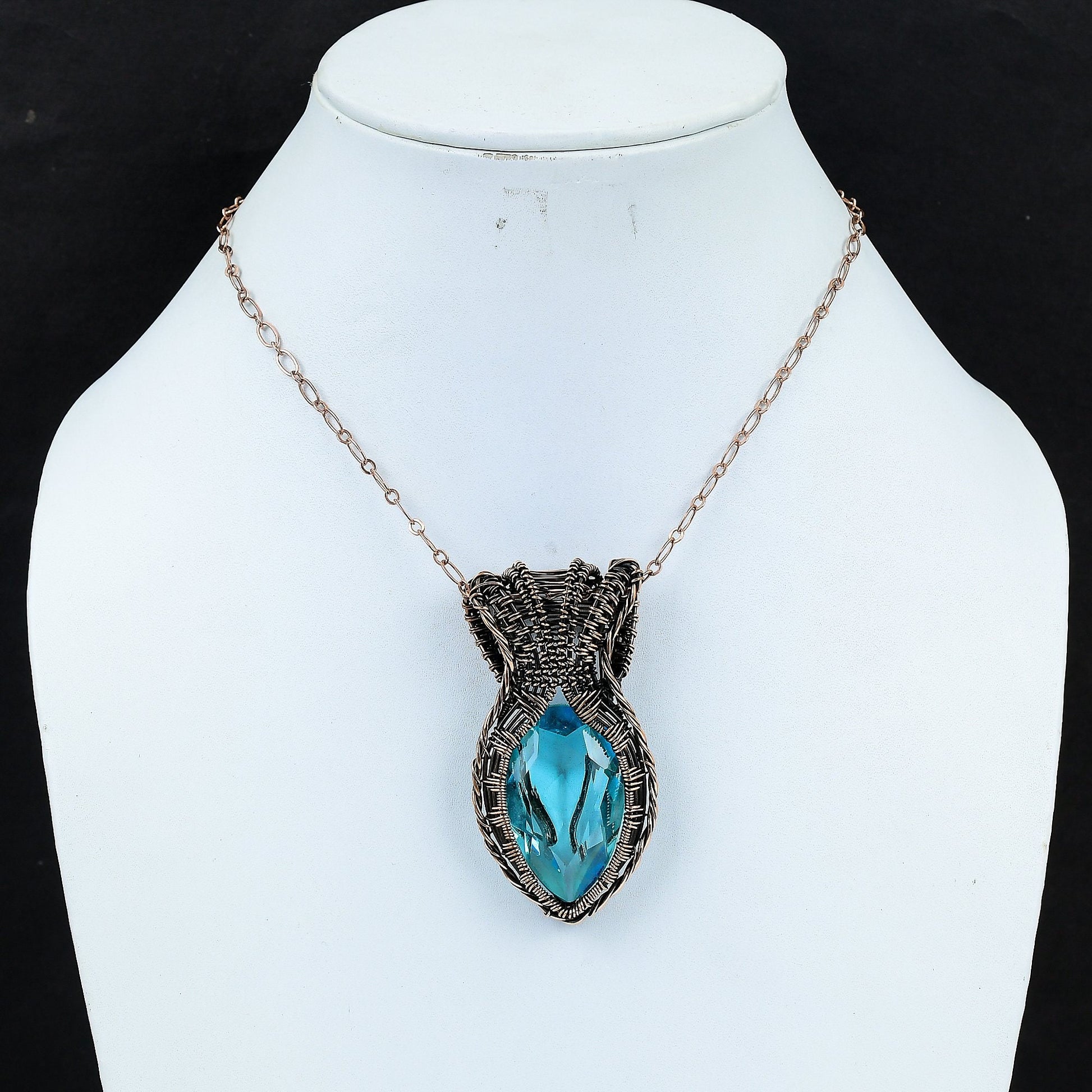 Discover the allure of timeless elegance with our handcrafted wire-wrapped pendant, featuring a captivating blue gemstone at its heart.
