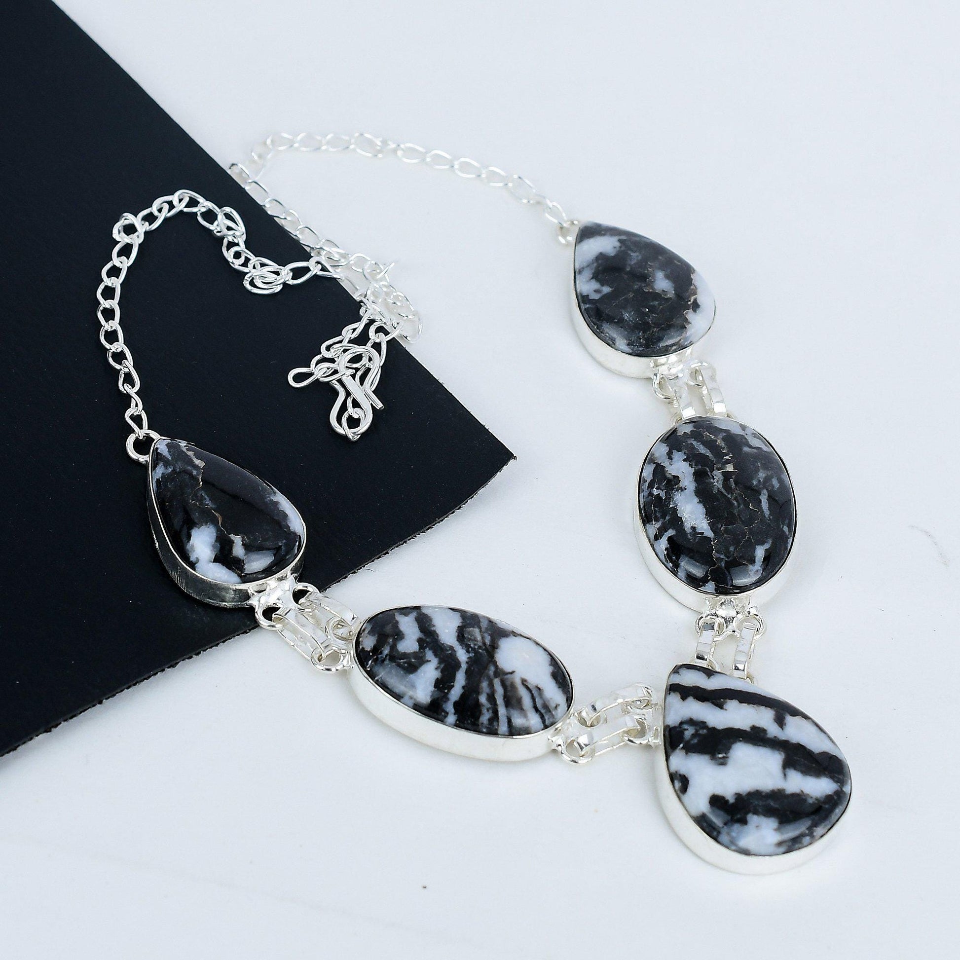 Embrace elegance with this stunning black and white gemstone necklace.