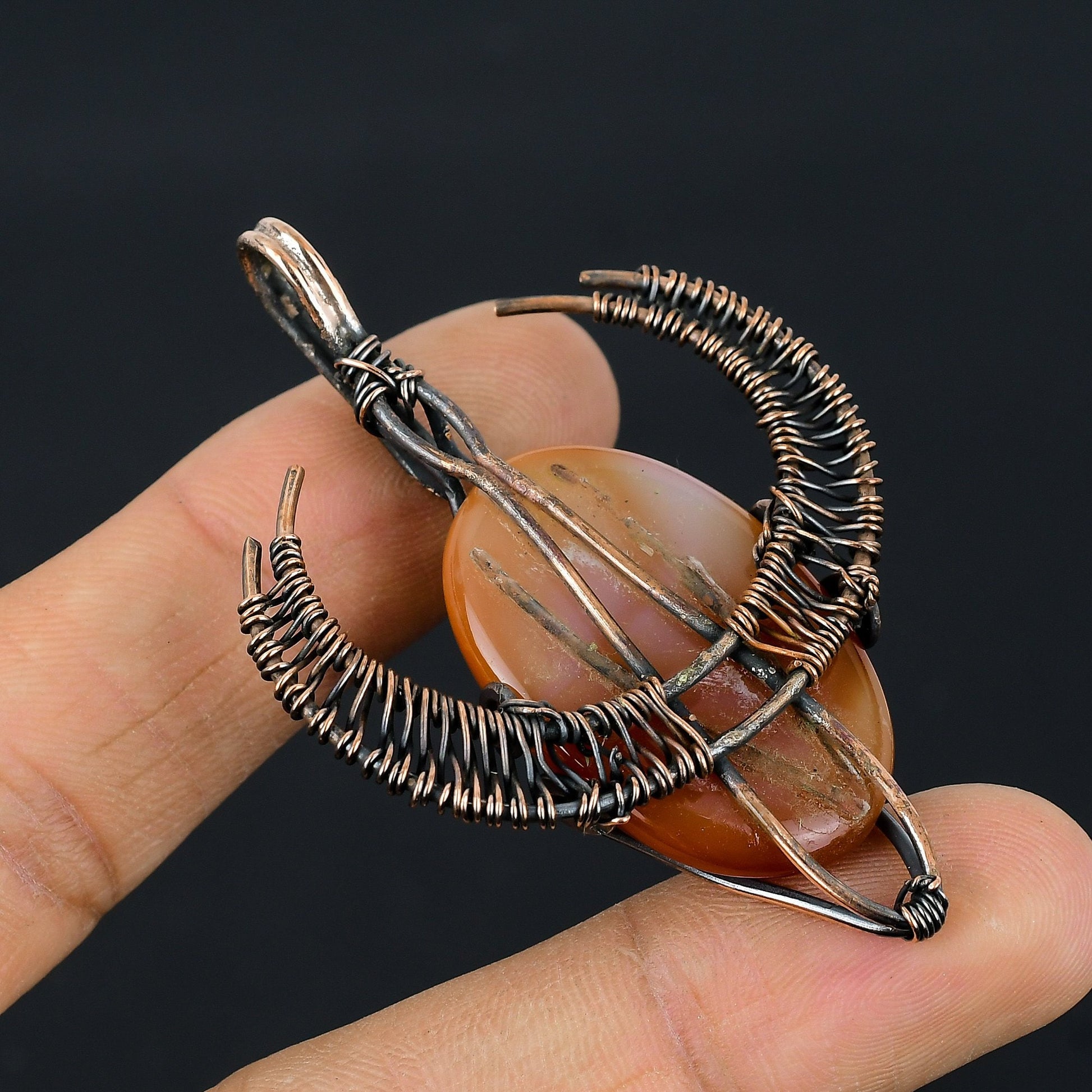Elevate your style with this exquisite handcrafted pendant, featuring a stunning orange agate gemstone as its centerpiece.