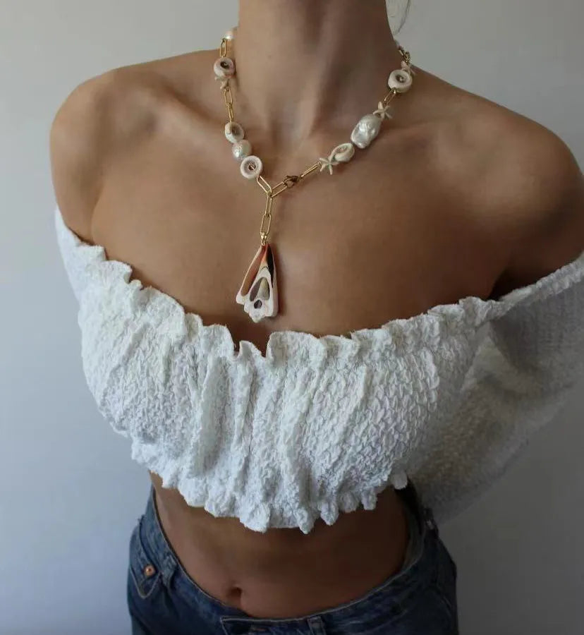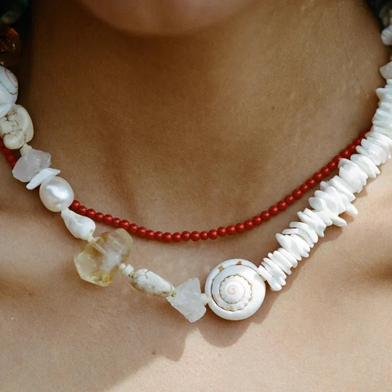 Discover the essence of nature and elegance with our exquisite Shell and Stone Necklace.