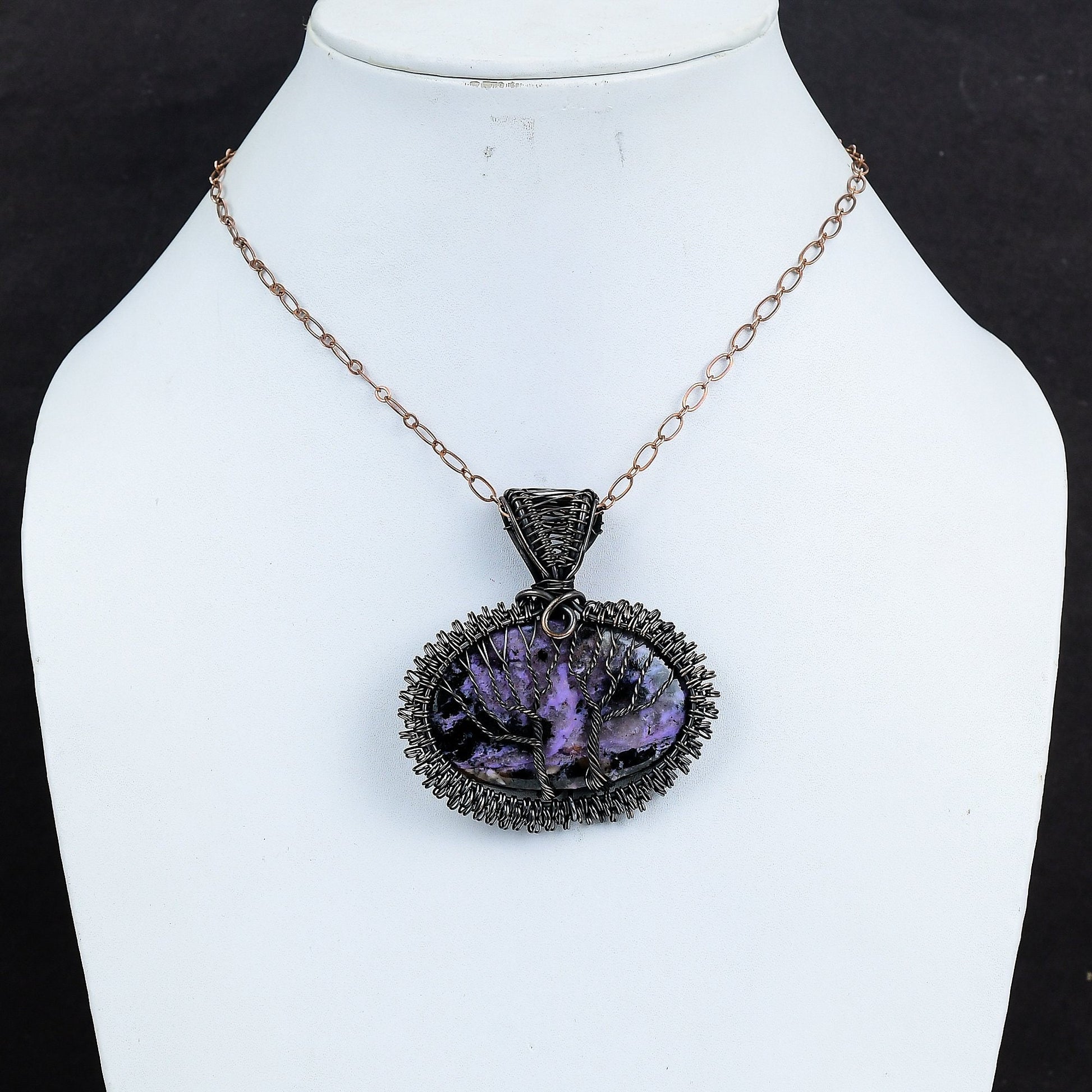 This stunning piece features a uniquely designed tree of life motif, intricately woven with high-quality wire to encapsulate the deep, mystical hues of the amethyst stone.