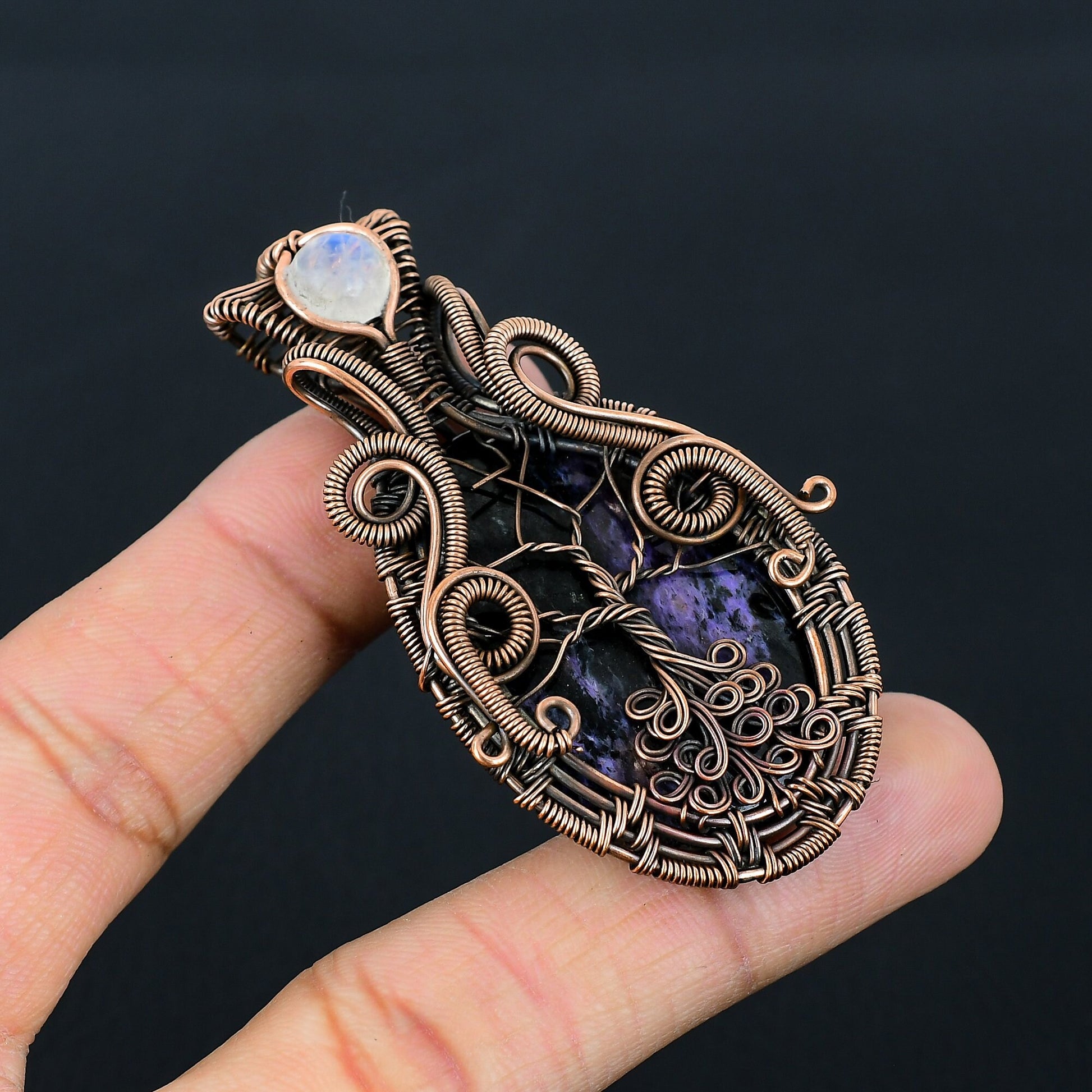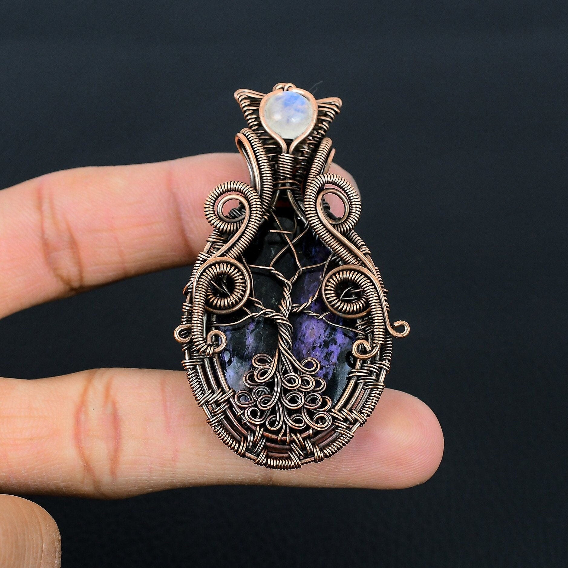 Design: This pendant features a stunning blend of copper wire intricately woven to cradle a mesmerizing stone, showcasing colors that evoke the mysteries of the night sky.