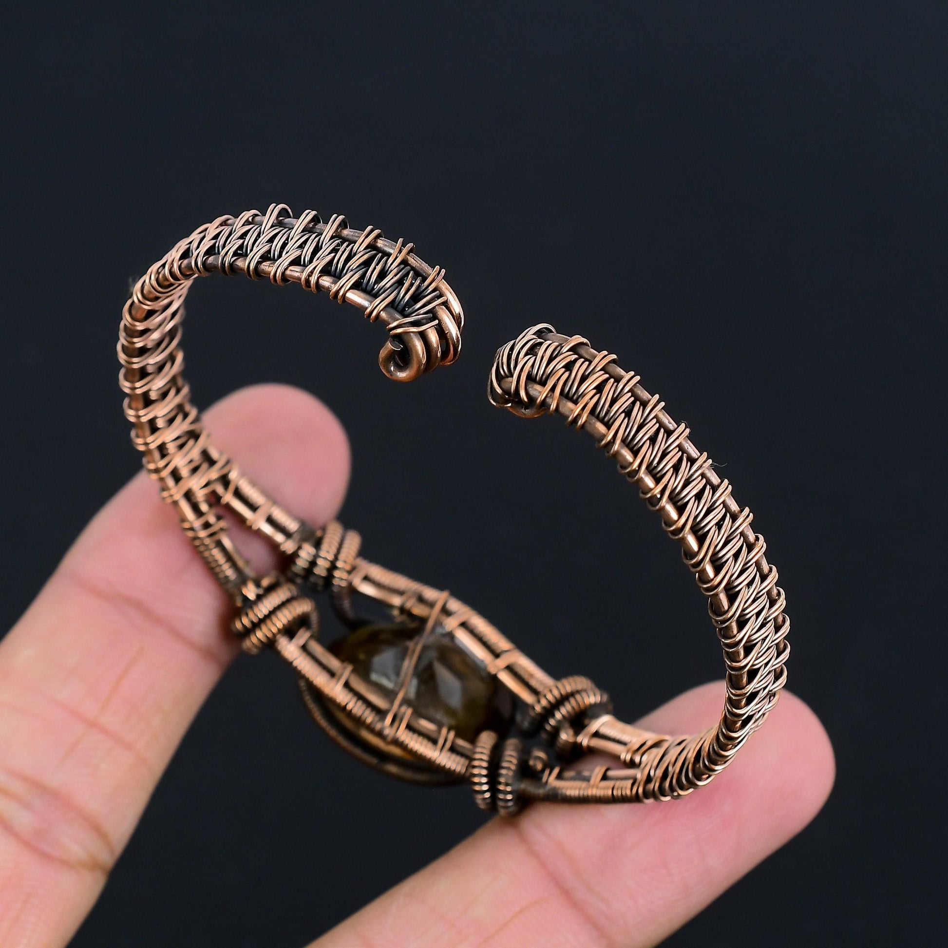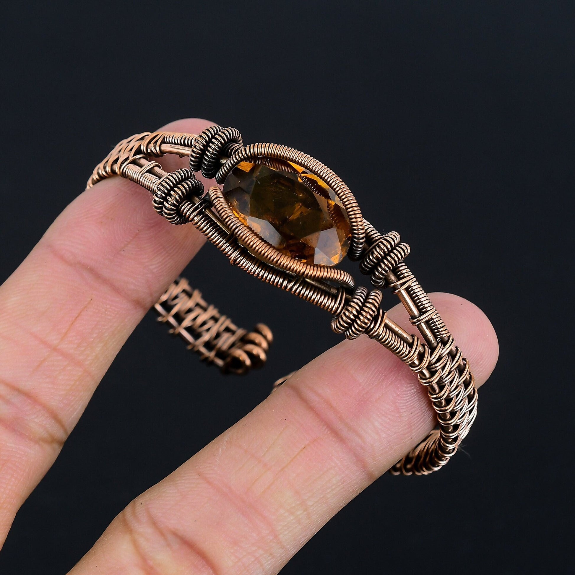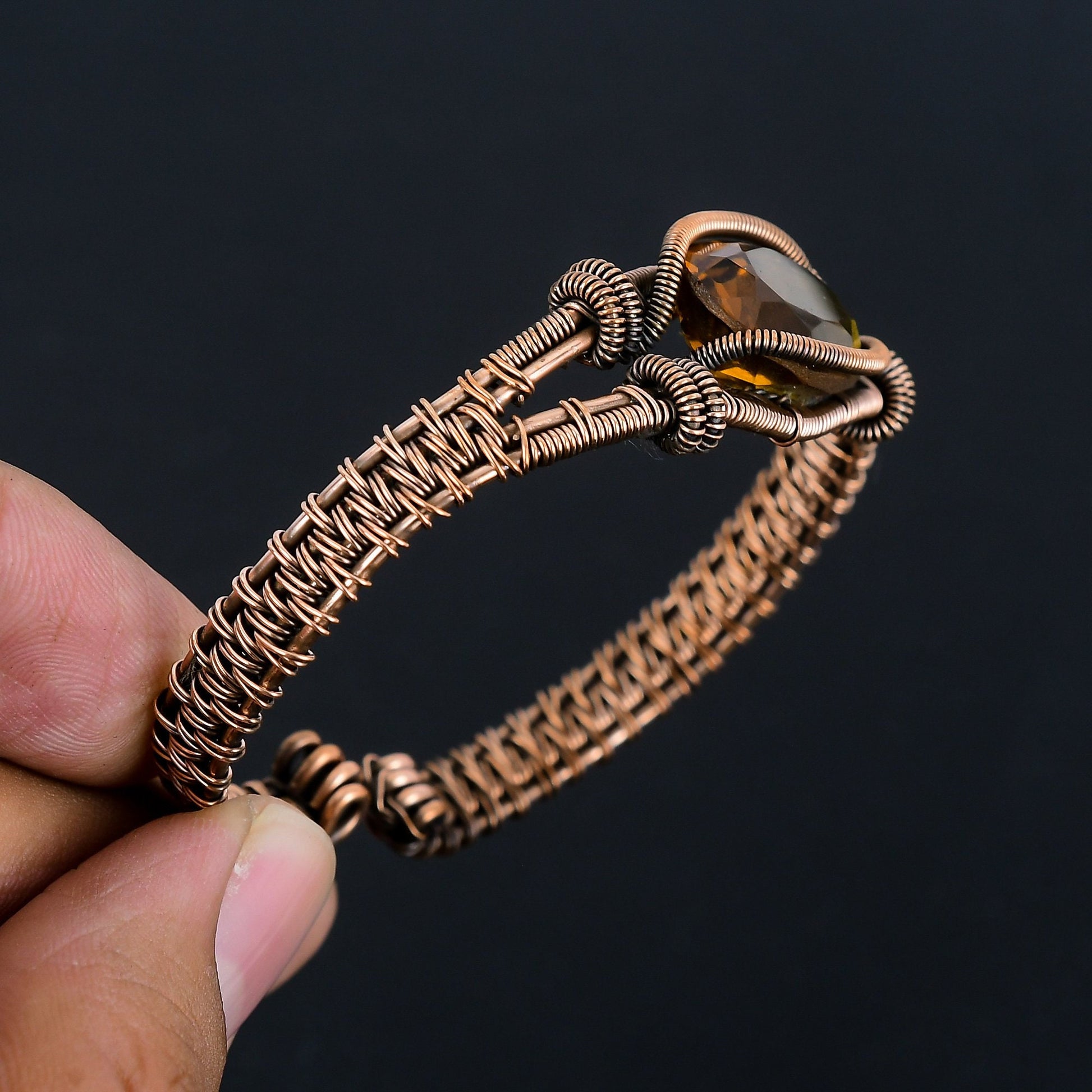 Introducing our exquisite handcrafted wire-wrapped copper bracelet, featuring a stunning amber gemstone at its center. This unique piece is meticulously crafted with a blend of elegance and earthy charm, making it a perfect accessory for any occasion.