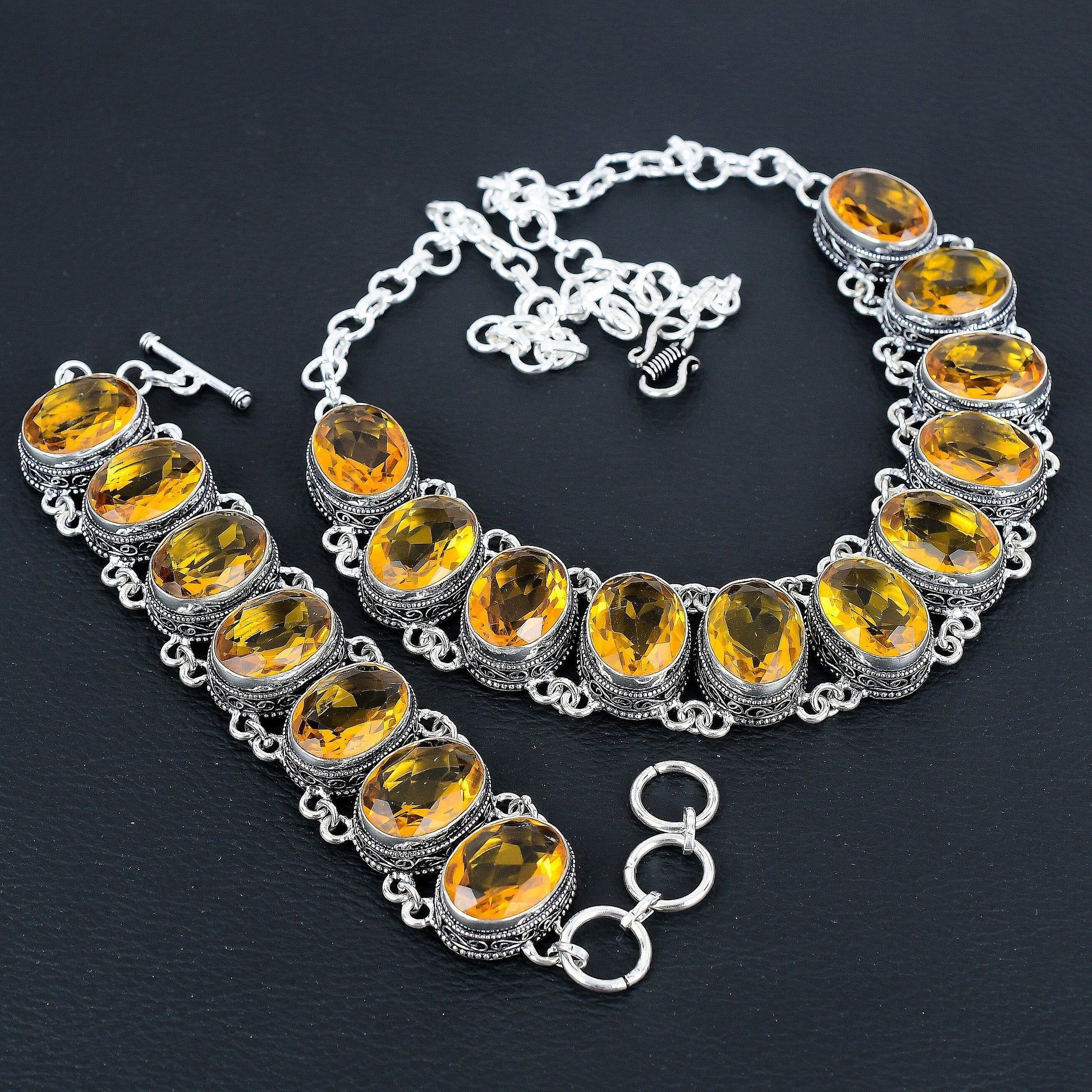 The rich, golden hues of the citrine stones exude warmth and radiance, making this necklace perfect for any occasion, from formal events to casual gatherings.