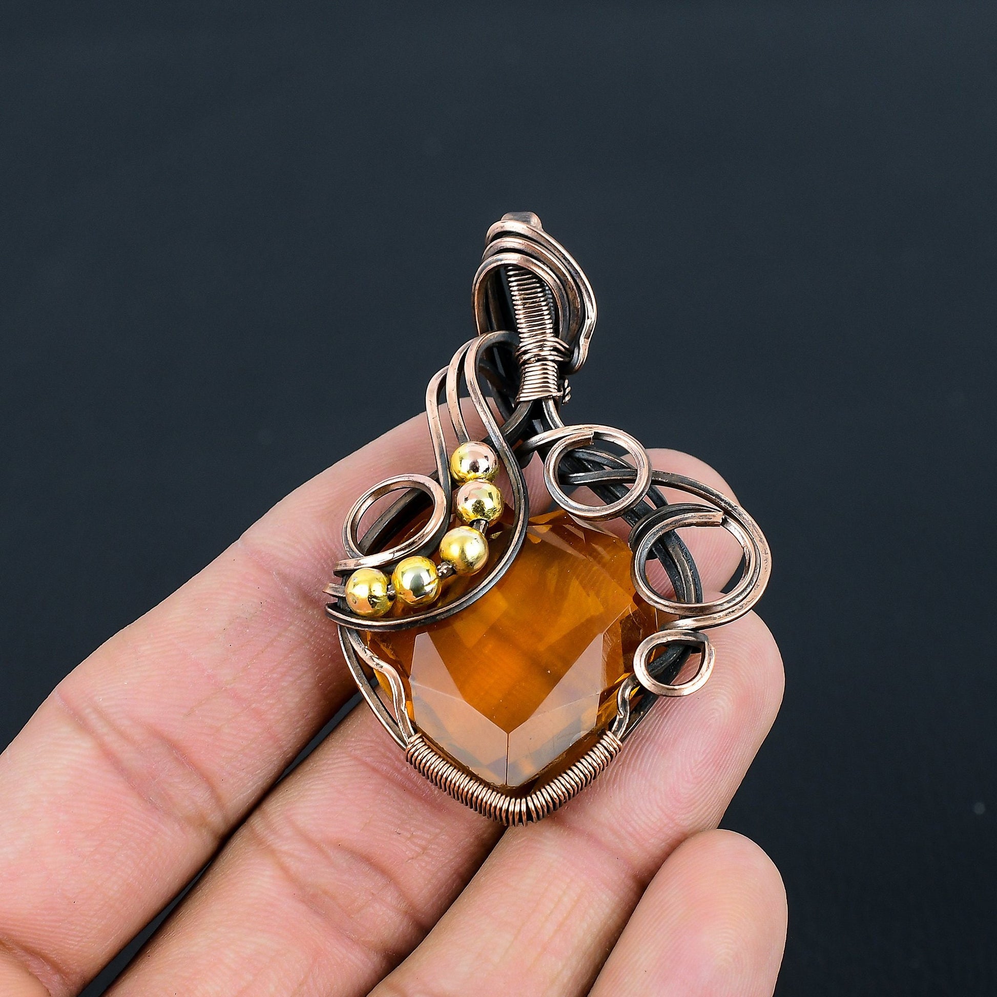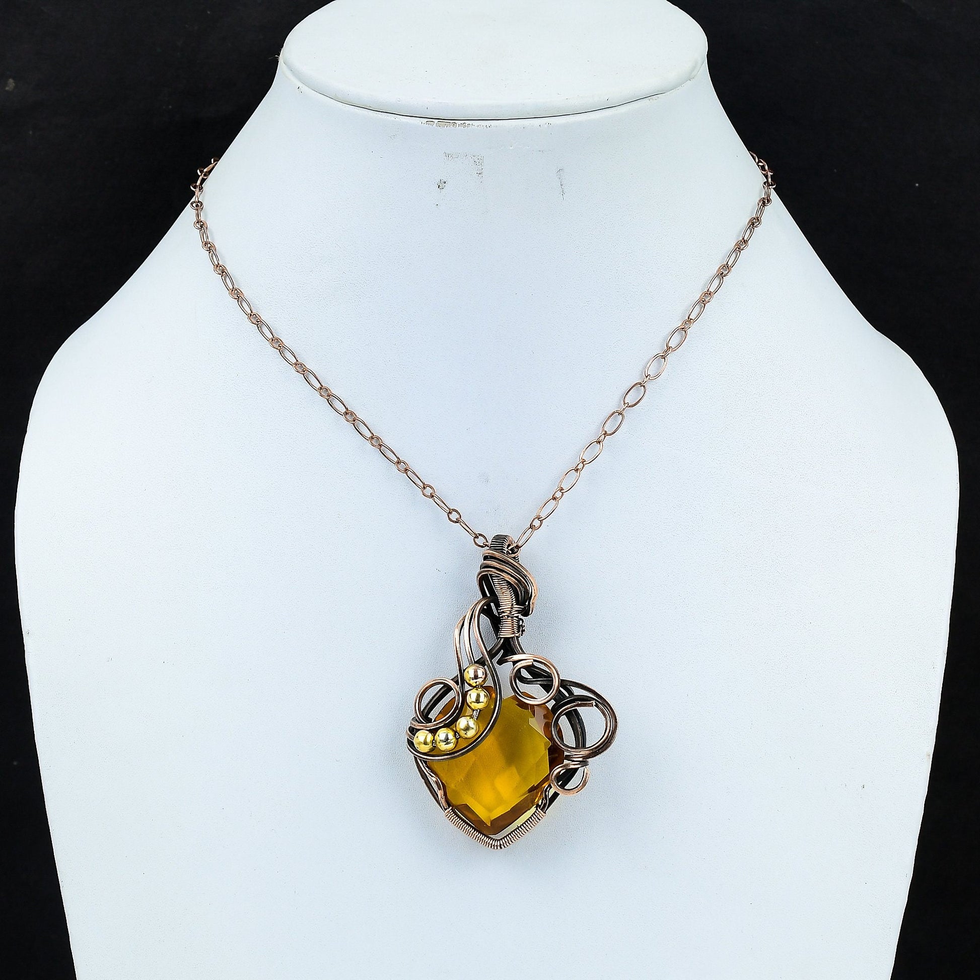 Indulge in the captivating allure of our handcrafted copper and gemstone pendant.