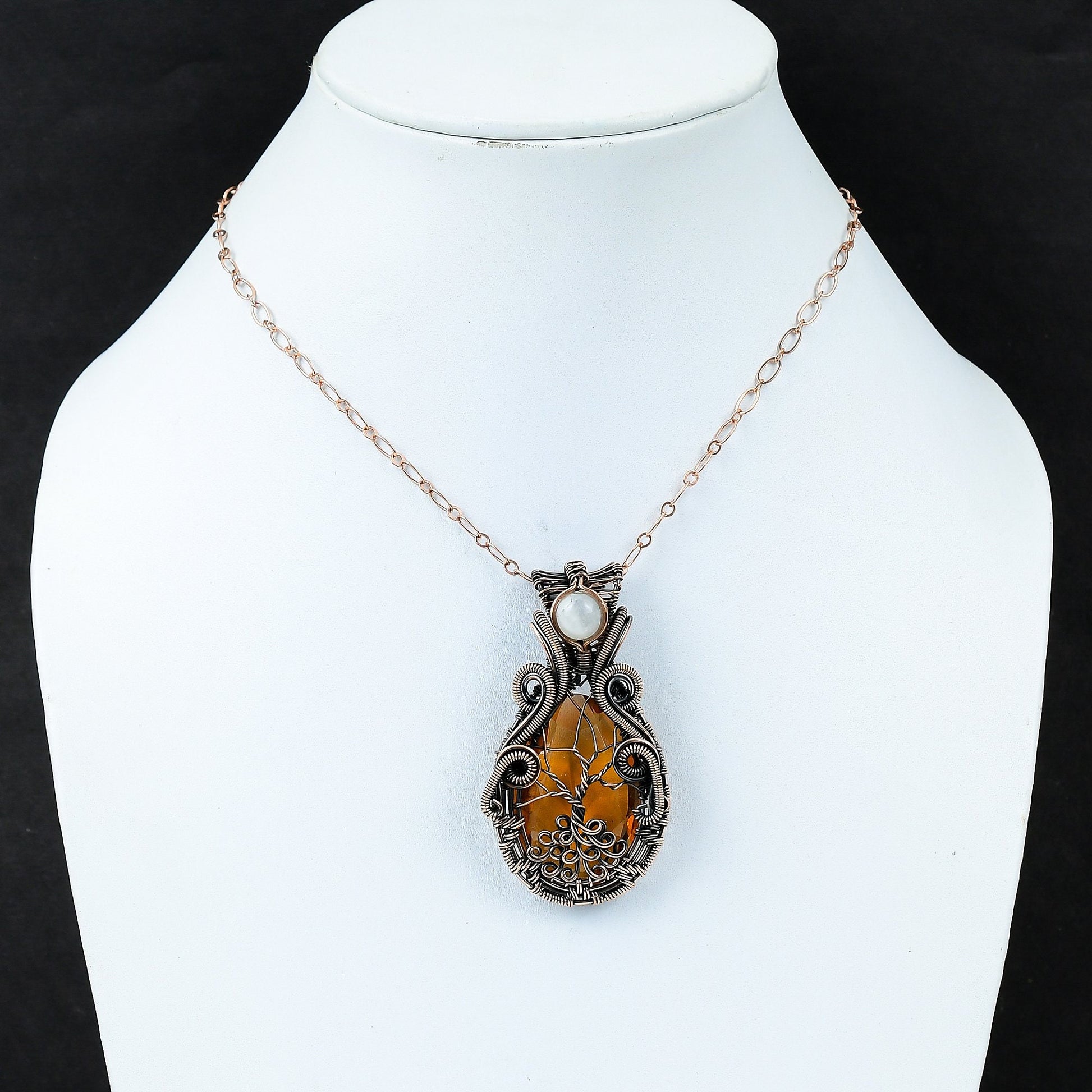 This stunning piece features a mesmerizing combination of copper wire wrapping and a beautifully polished gemstone centerpiece, embodying nature's beauty and the timeless art of jewelry making.