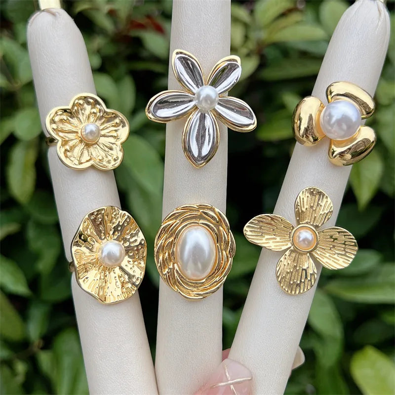 Enhance your elegance with our exquisite Flower-Inspired Pearl Ring Set. Each ring features a unique floral design, delicately crafted to bring out the natural beauty of freshwater pearls.