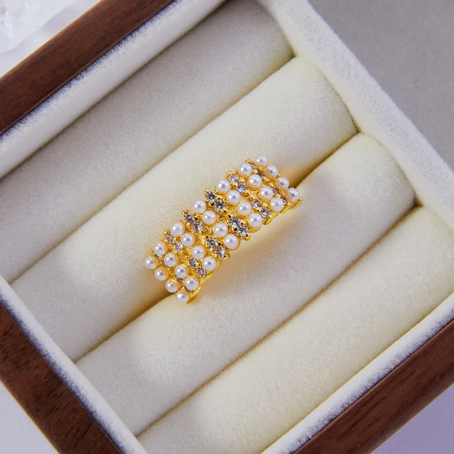 The shimmering gemstones are meticulously set in a beautifully crafted gold band, adding a touch of glamour to any outfit.