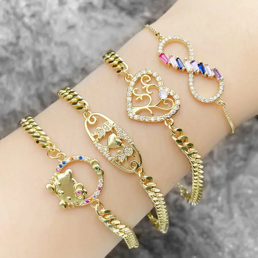 - An enchanting infinity bracelet adorned with multicolored gemstones.
