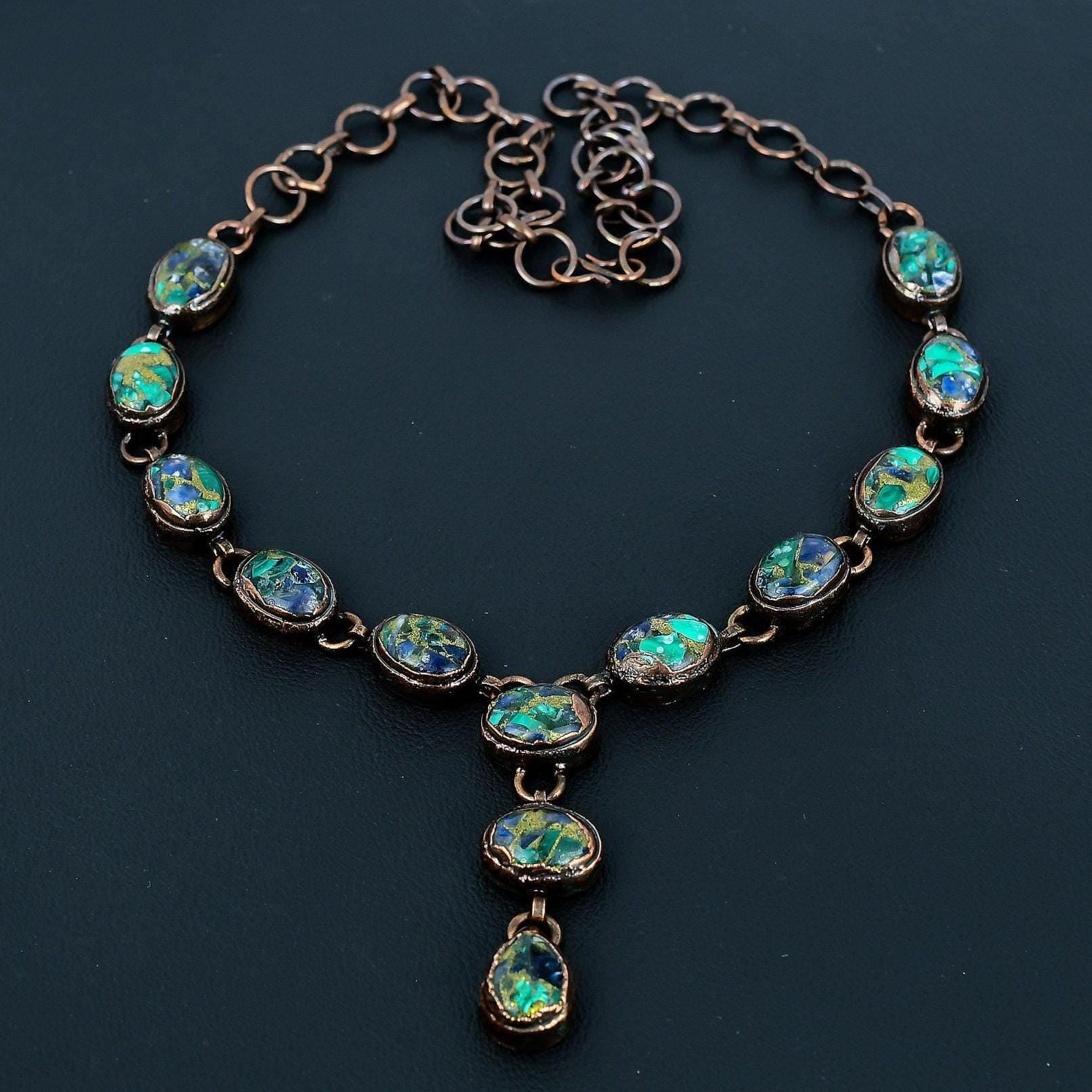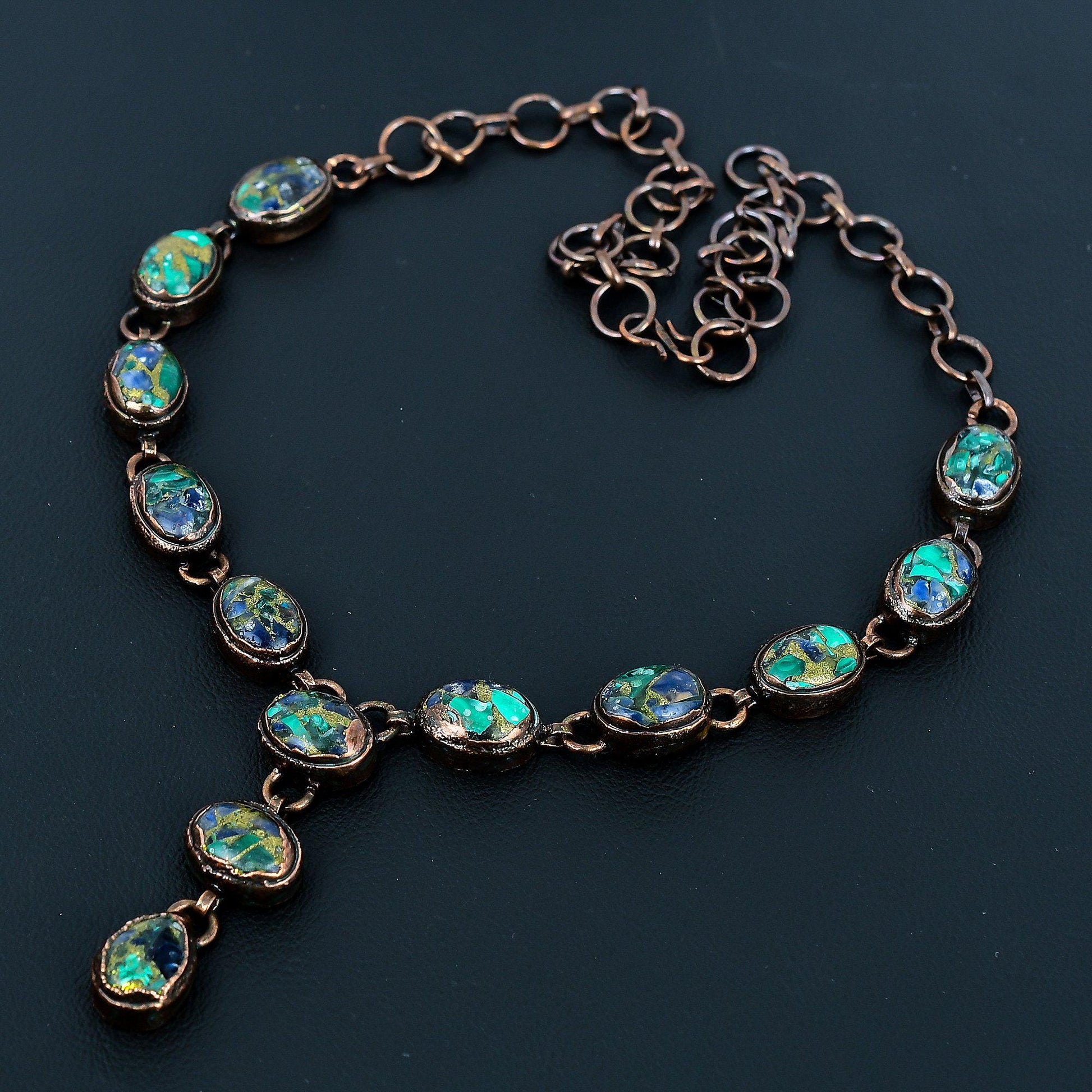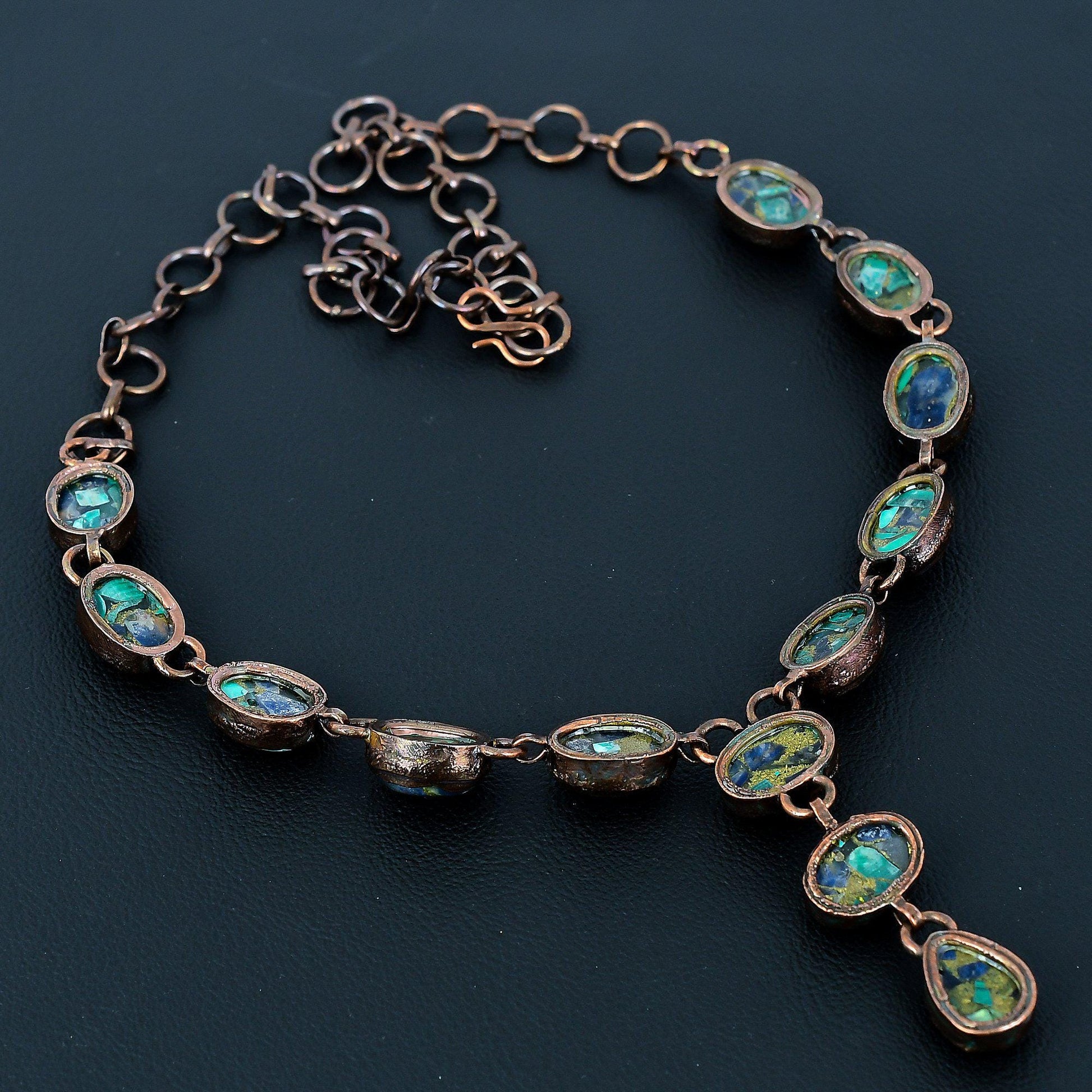 This exquisite piece features carefully selected oval opals, each set in a unique antique-style copper finish.
