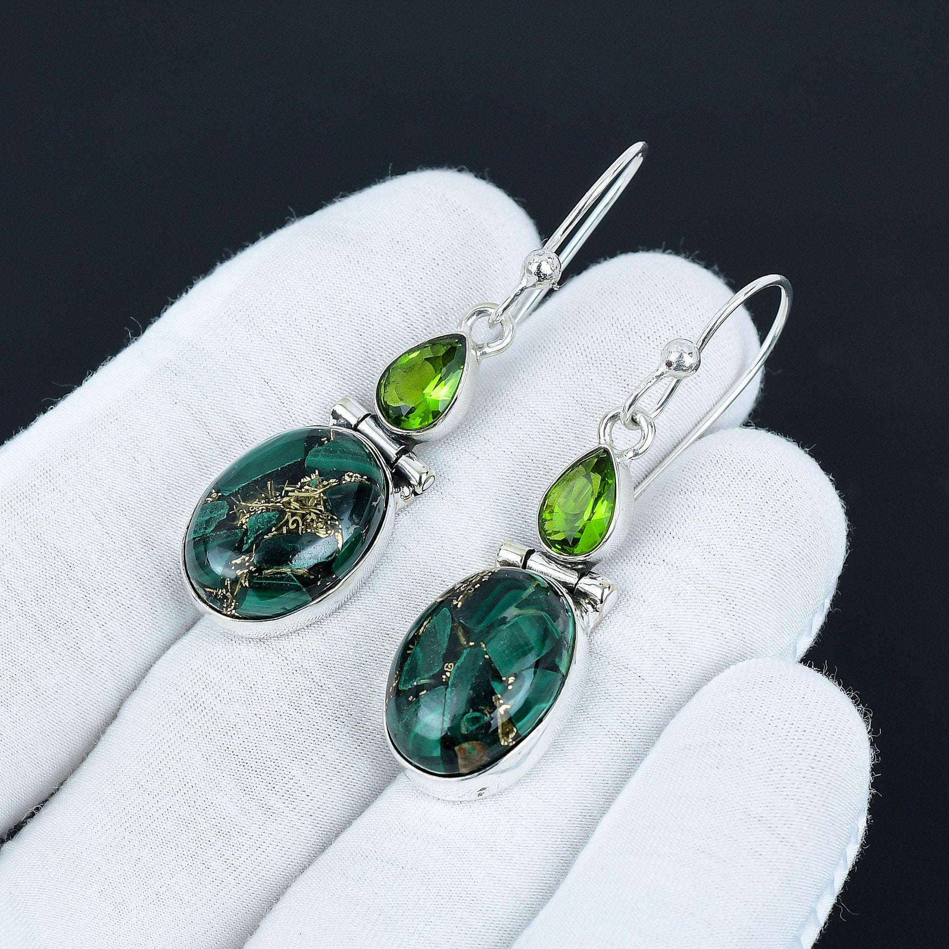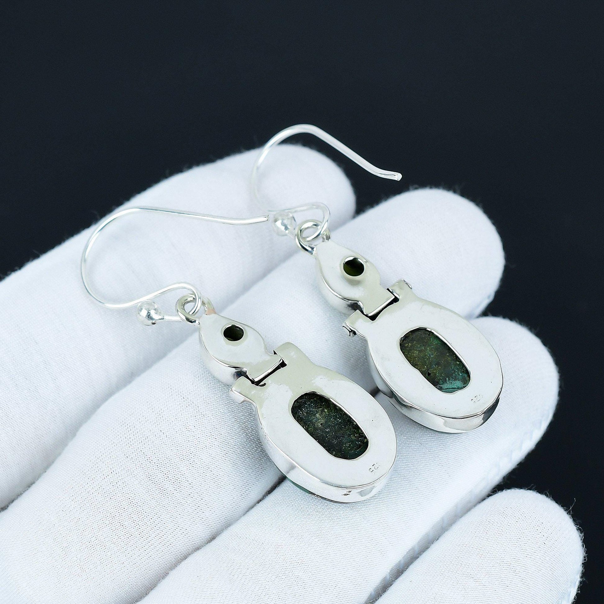 Elevate your style with these exquisite handcrafted earrings, featuring vibrant green gemstones that capture the essence of nature's beauty.