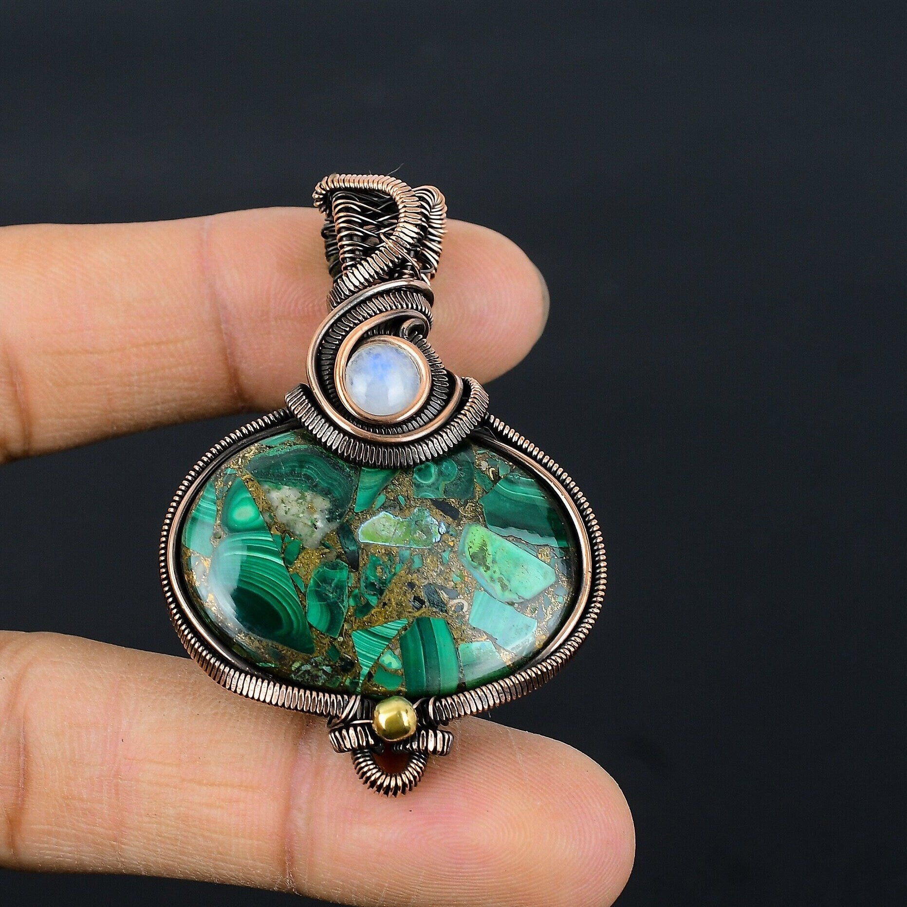 - Malachite Gemstone: Features a stunning, richly colored green malachite that adds a vibrant touch to any outfit.